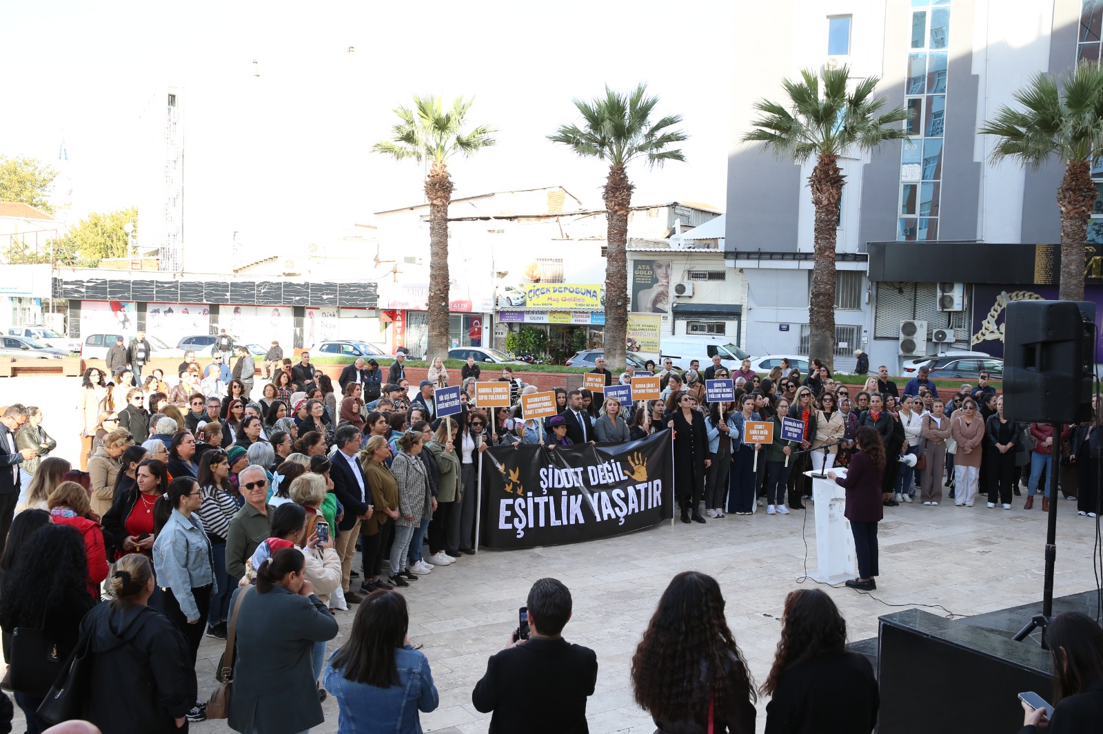 Çiğli Belediye Başkanı Onur Emrah Yıldız da konuşmasında kadınların mücadelesine destek verdiklerini belirtti. Yıldız, “Bu gün, sadece bir anma değil; aynı zamanda bir hatırlatma, bir uyarı ve bir mücadele çağrısıdır. Kadına yönelik şiddet, insanlık tarihinin en büyük utançlarından biridir ve ne yazık ki hala hayatlarımızın bir parçası olmaya devam etmektedir. Çiğli Belediyesi olarak biz, kadınların yanında olmayı bir görev değil, bir sorumluluk olarak görüyoruz. Kadınların özgürce yaşayabildiği, eşit haklara sahip olduğu, şiddetten uzak bir Çiğli için çalışıyoruz. Kadınların barınma, istihdam, eğitim ve sosyal yaşamda güçlenmesi için projelerimizi hayata geçiriyoruz. Çiğli’de kadınların sesi daha gür çıkacak, kadınların mücadelesi daha güçlü olacak. Bizler, kadınların yanında olmaya, onların haklarını savunmaya ve eşitlikçi bir gelecek için çalışmaya devam edeceğiz" ifadelerini kullandı.