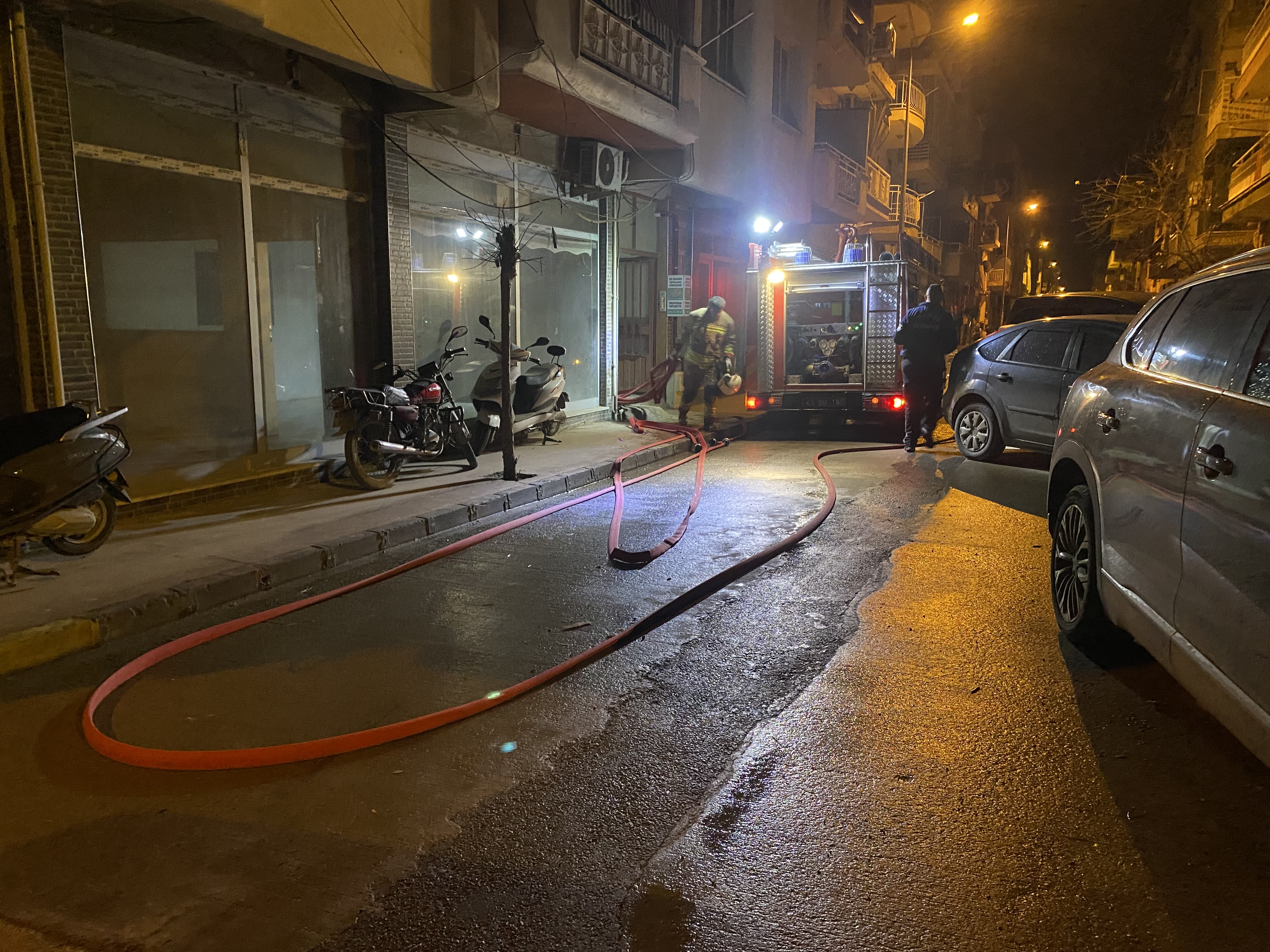 Alevleri fark eden S.B. hızla evden dışarı çıktı. İhbar üzerine olay yerine itfaiye, sağlık ve polis ekipleri sevk edildi. Yangın nedeniyle bina sakinleri tedbir amaçlı tahliye edildi.