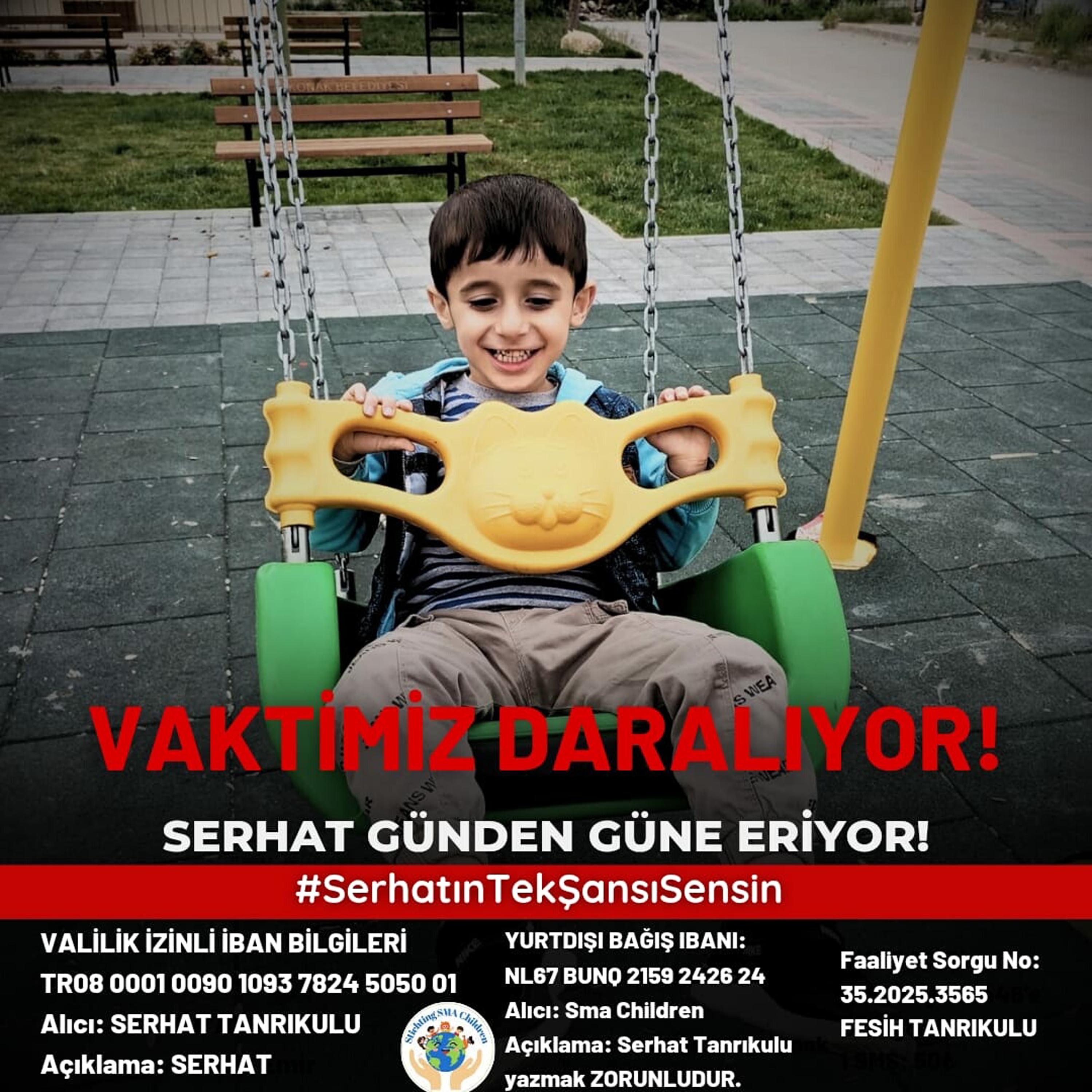 Menemen ilçesinde yaşayan Yeşim Tanrıkulu ve Fesih Tanrıkulu (32) çiftinin 04 Nisan 2019 tarihinde dünyaya gelen oğulları Serhat Tanrıkulu 3,5 yaşına kadar yürümedi. DMD teşhisi konulan Serhat'ta kas kayıpları başladı. Serhat, son birkaç aydır da parmak uçlarına basarak yürümeye başladı. DMD'nin ardından oğullarının otizmli olduğunu da öğrenen aile, birkaç kelime dışında hiç konuşamayan Serhat'ın tekerlekli sandalyeye mahkum olmadan gen tedavisinden faydalanmasını istiyor. 3 çocuğundan ortancası olan oğlu Serhat'ın haftada 5 gün özel eğitim ana sınıfına gittiğini anlatan anne Yeşim Tanrıkulu, "Serhat 3,5 yaşında yürüdü. 'Her çocuk farklı olur' demiştik ama geç yürümesi şüpheye düşürdü. Çiğli Eğitim Araştırma Hastanesi'ne götürdük. Kan tahlilleri yapıldı ve hastanede DMD tanısı koydular. O gün dünyamız başımıza yıkıldı. Birkaç ay sonra da otizm olduğunu öğrendik. Dünya ikinci kez başımıza yıkıldı" dedi.