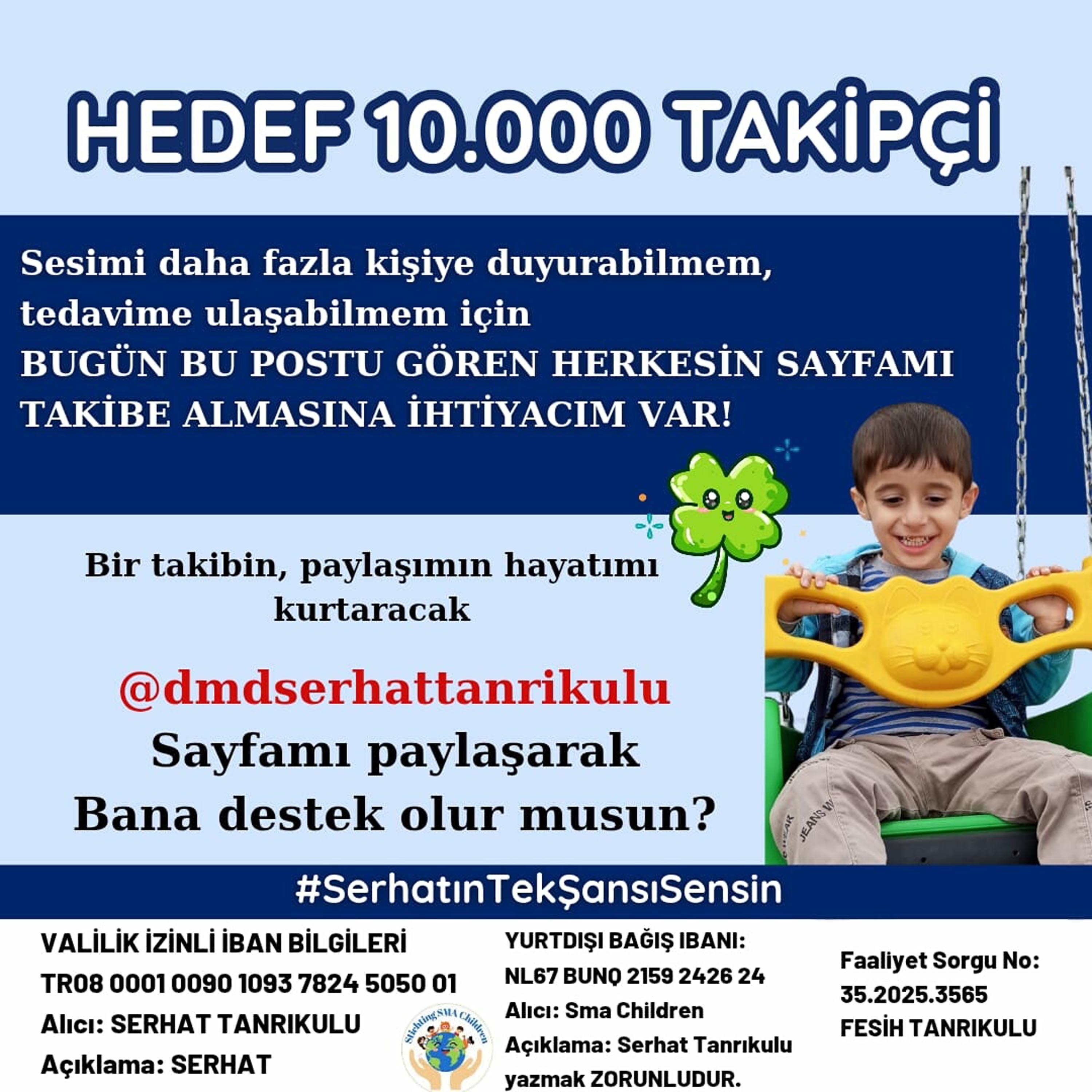 1,5 ay önce oğlu Serhat'ın tedavisi için bağış kampanyası başlattıklarını söyleyen Tanrıkulu, "Ama maalesef sesimizi duyuramıyoruz. Gen tedavisinin maliyeti 3,5 milyon dolar. Bunu maalesef eşimle ömür boyu çalışsak da karşılayamayız. Eğer ki Serhat bu ilacı alamazsa tekerlekli sandalyeye mahkum kalacak. Serhat bunları yaşamasın diye Allah rızası için Serhat'a destek olun. Oğlumu kaybetmek istemiyorum. Çaresiz kaldık. Otizmli olduğu için hiçbir şekilde algılayamıyor. Sadece el çırpıyor, bağırıyor. Sabaha kadar inleyip, ağlıyor. Hastalığının farkında değil. Sırtı ya da eli ağrıdığında eline vuruyor ama derdini anlatamıyor. Otizm olmasaydı en azından 'Anne oram ağrıyor, buram ağrıyor' derdi. DMD nedeniyle belli bir süre sonra ellerini bile hareket ettiremeyecek. Videosunu gördüğüm bir çocuk vardı. 'Anne kafamı kaşır mısın?' diyordu. Serhat onları da söyleyemeyecek. Destekleri bekliyoruz. Kampanyamız şu an 1,5 ay olmasına rağmen yüzde 1 bile olmadı" dedi.