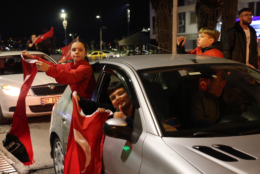 Araçları ile bölgeye gelen vatandaşların bir kısmı korna çalarak kutlamalara katılırken, bazı vatandaşlar ise ellerinde Türk bayrakları ile sevinç gösterisinde bulundu.