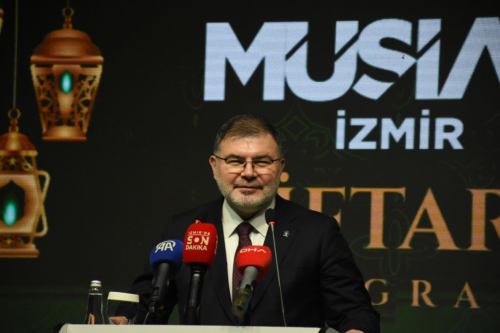 Müstakil Sanayici ve İşadamları Derneği (MÜSİAD) İzmir Şubesi tarafından düzenlenen iftar programına AK Parti Genel Sekreteri Eyyüp Kadir İnan, İzmir Valisi Süleyman Elban, İzmir Cumhuriyet Başsavcısı Ali Yeldan, AK Parti İzmir Milletvekili Ceyda Bölünmez Çankırı, MÜSİAD Genel Başkanı Burhan Özdemir, MÜSİAD İzmir İl Başkanı Gökhan Temur, AK Parti İzmir İl Başkanı Bilal Saygılı, MHP İzmir İl Başkanı Veysel Şahin ile şehit aileleri ve gaziler, yaşlılar evinde kalanlar ve kimsesiz çocuklar katıldı.