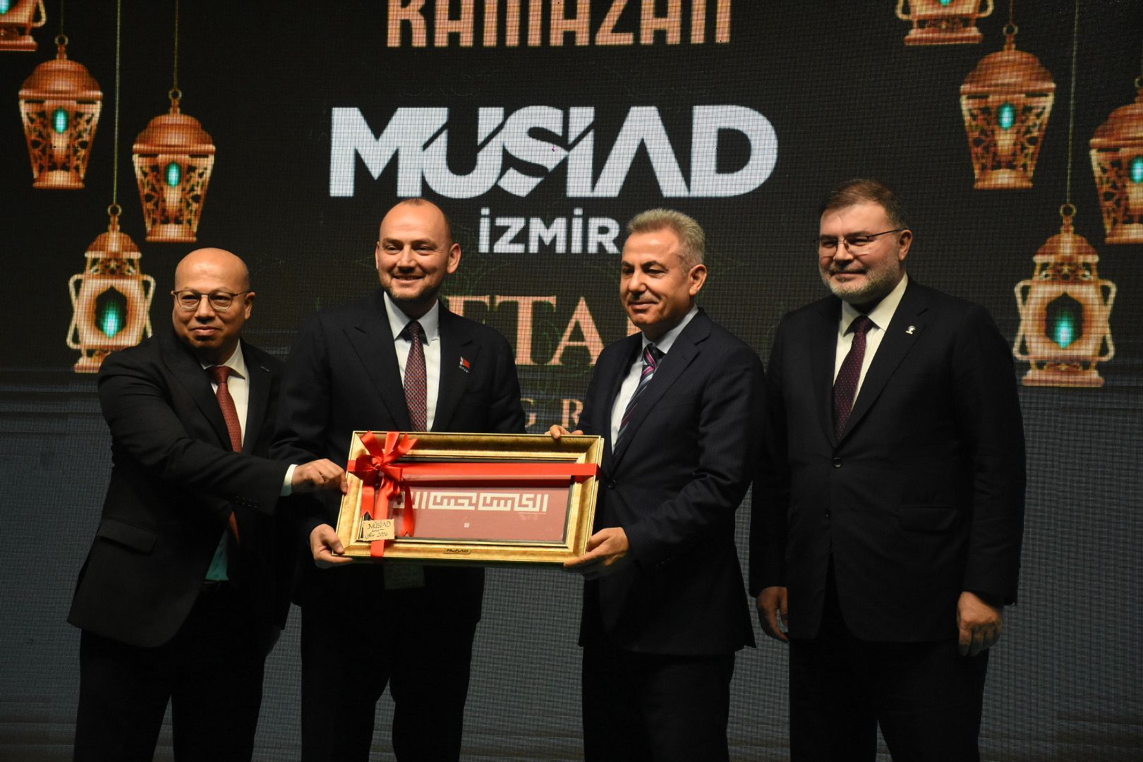 Programda konuşan İzmir Valisi Süleyman Elban ise “Ahilik kültürünü rehber edinmiş, ilmi, ahlakı, vefayı, edebi, rehber edinmiş, ülkemizin dört bir yanını kucaklayan ve dünyanın her yerinde gururla ülkemizi temsil eden kıymetli MÜSİAD’ımıza ve yönetimine bizleri bu çatı altında bir araya getirdiği için teşekkür ediyorum” dedi. (DHA)