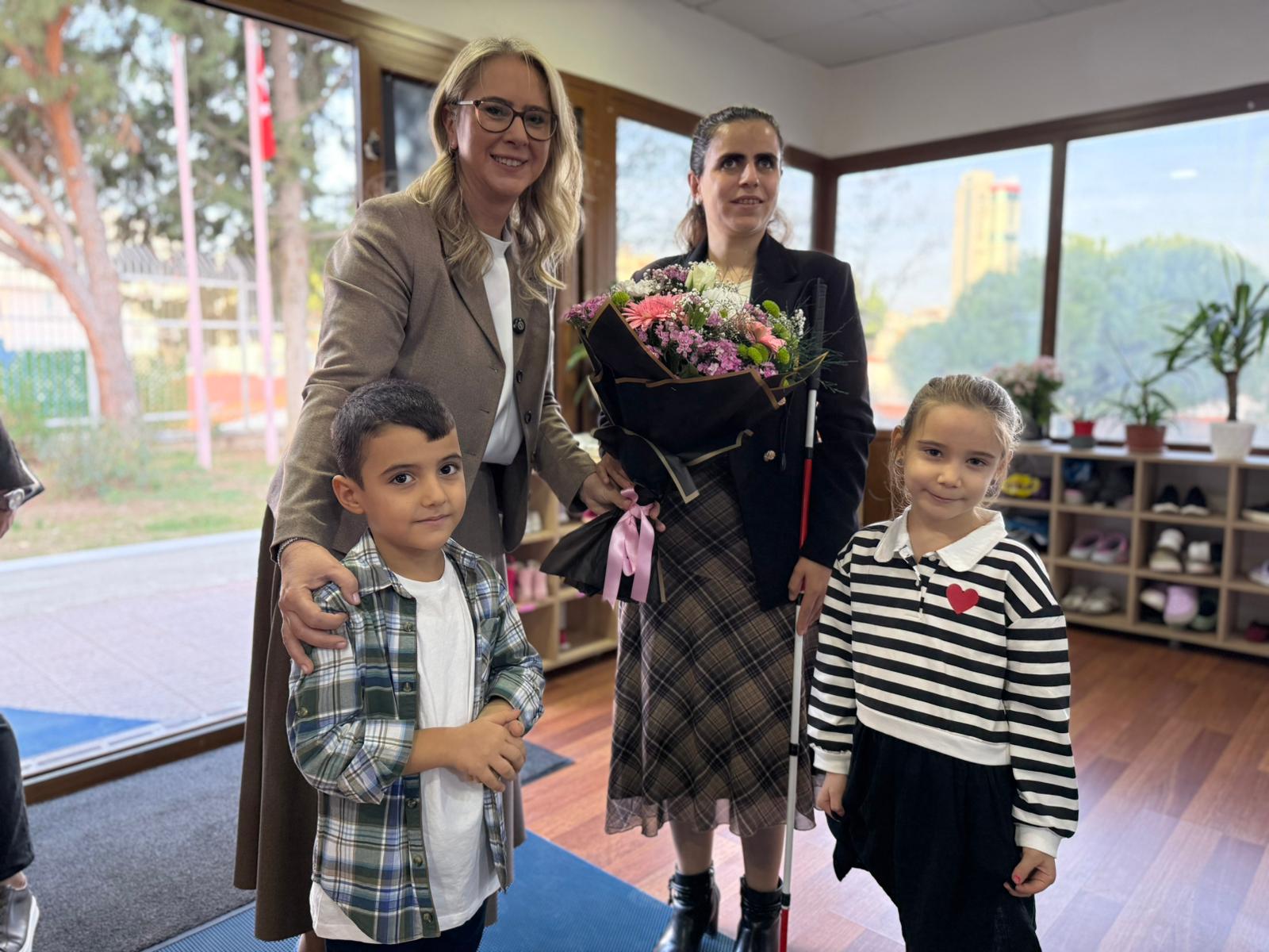 Öğretmen Burcu Salman da ziyaretten duyduğu memnuniyeti dile getirerek şunları söyledi: “Kendi hayatımı kurma noktasında çabaladım ve geldiğim nokta olarak buradayım. Çocukların yanında çok mutluyum. Çok keyif alıyorum çocuklarla birlikte olmaktan. En çok elimdeki bastonumu merak ediyorlar ve ‘bu nedir’ diye soruyorlar. Anlatıyorum onlara. Gözlerini kapatıp kendileri de sınıf ortamında zaman zaman deniyorlar. Empati kazanıyorlar ve birbirlerini de uyarıyorlar. Öğrenmiş olan öğrenci, ‘hayır öyle yapmamalısın. Yoksa öğretmenimiz takılıp düşebilir’ gibi ikazlarda bulunabiliyorlar. Tek istediğim yol üzerindeki tabelaları, yanlış dikilmiş ağaçları kaldırım üzerindeki tezgah ve benzeri eşyaların daha fazla denetlenmesi ve uygun olarak konumlandırılması.”