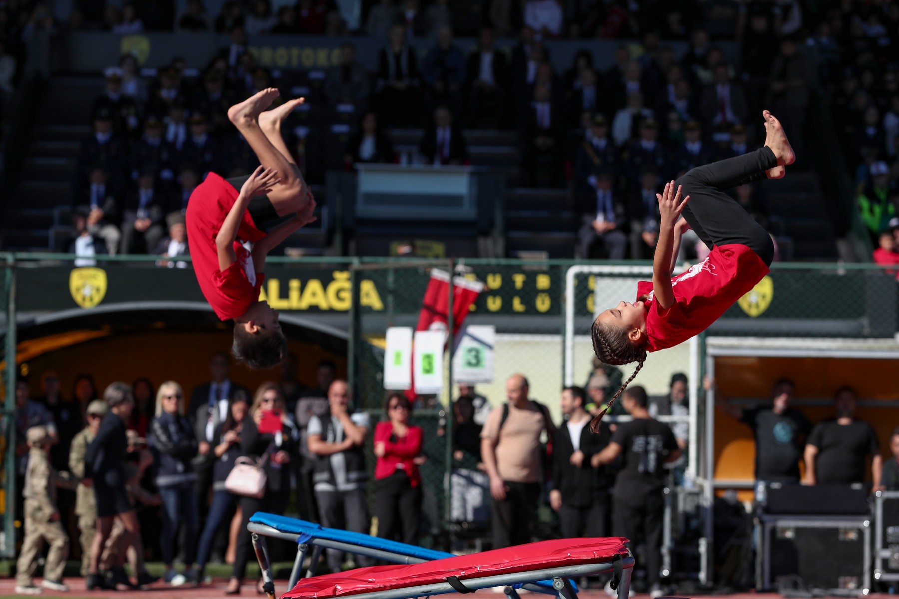 Aliağa Atatürk Stadyumu’nda düzenlenen kutlama programı geçit töreni ile sona erdi.
