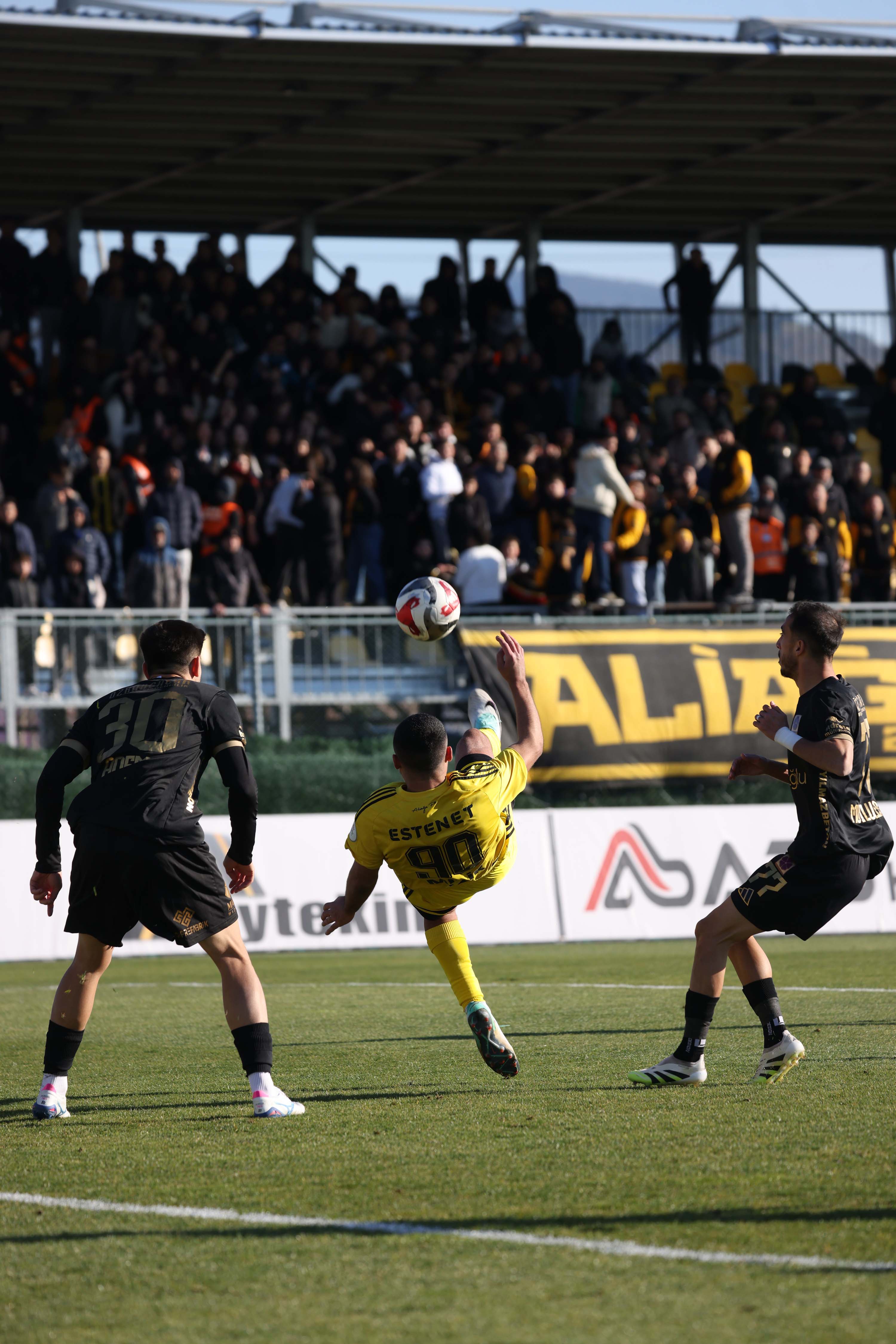 Sarı-siyahlılar müsabakanın 38’inci dakikasında Hasan Kılıç’ın golüyle öne geçti: 1-0. Devreyi bu skorla önde tamamlayan Aliağa FK ikinci yarıda da avantajını koruyup kritik 3 puanı hanesine yazdırdı.
