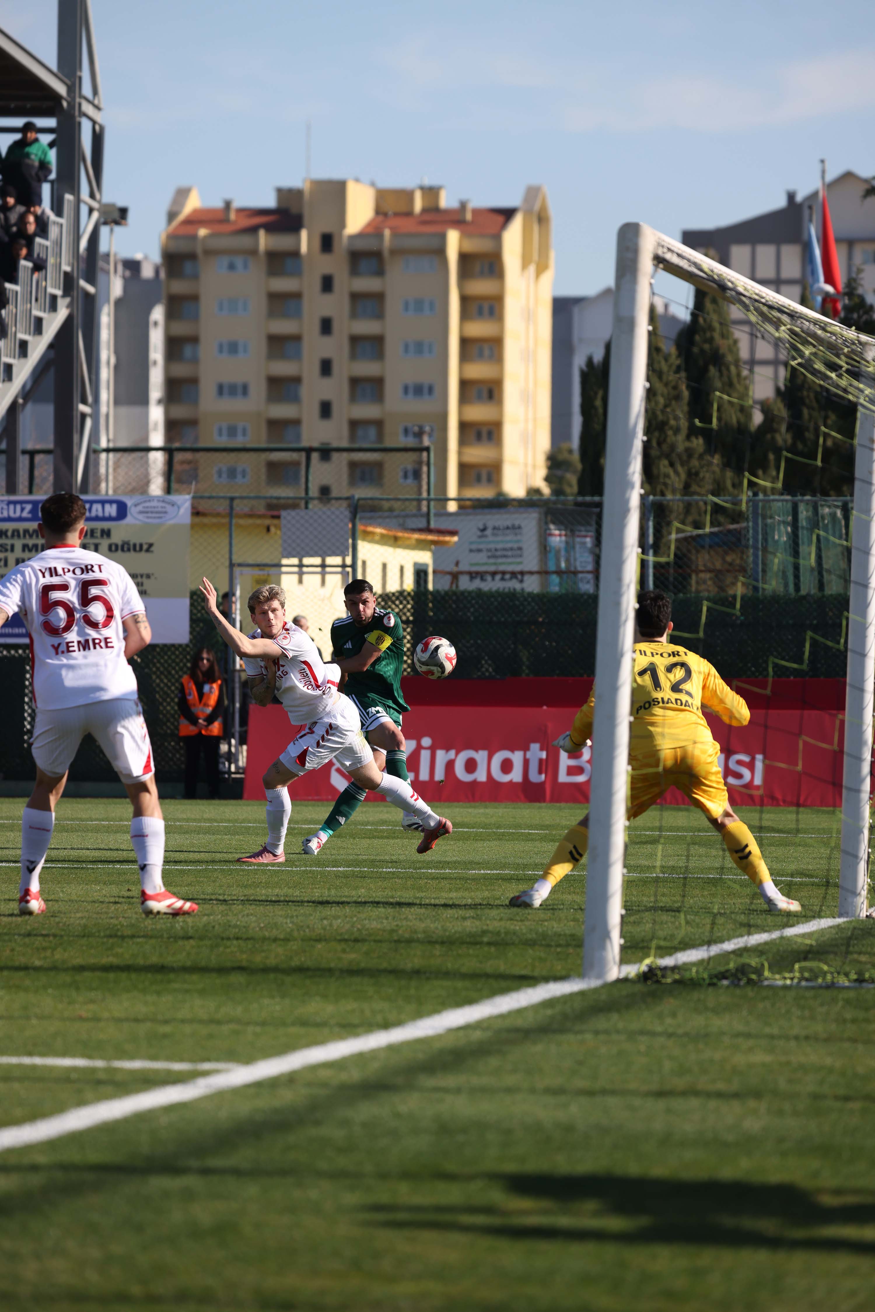 27’nci dakikada hızlı gelişen Aliağa FK atağında Burak’ın şutunda top yan direğe çarpıp auta çıktı.