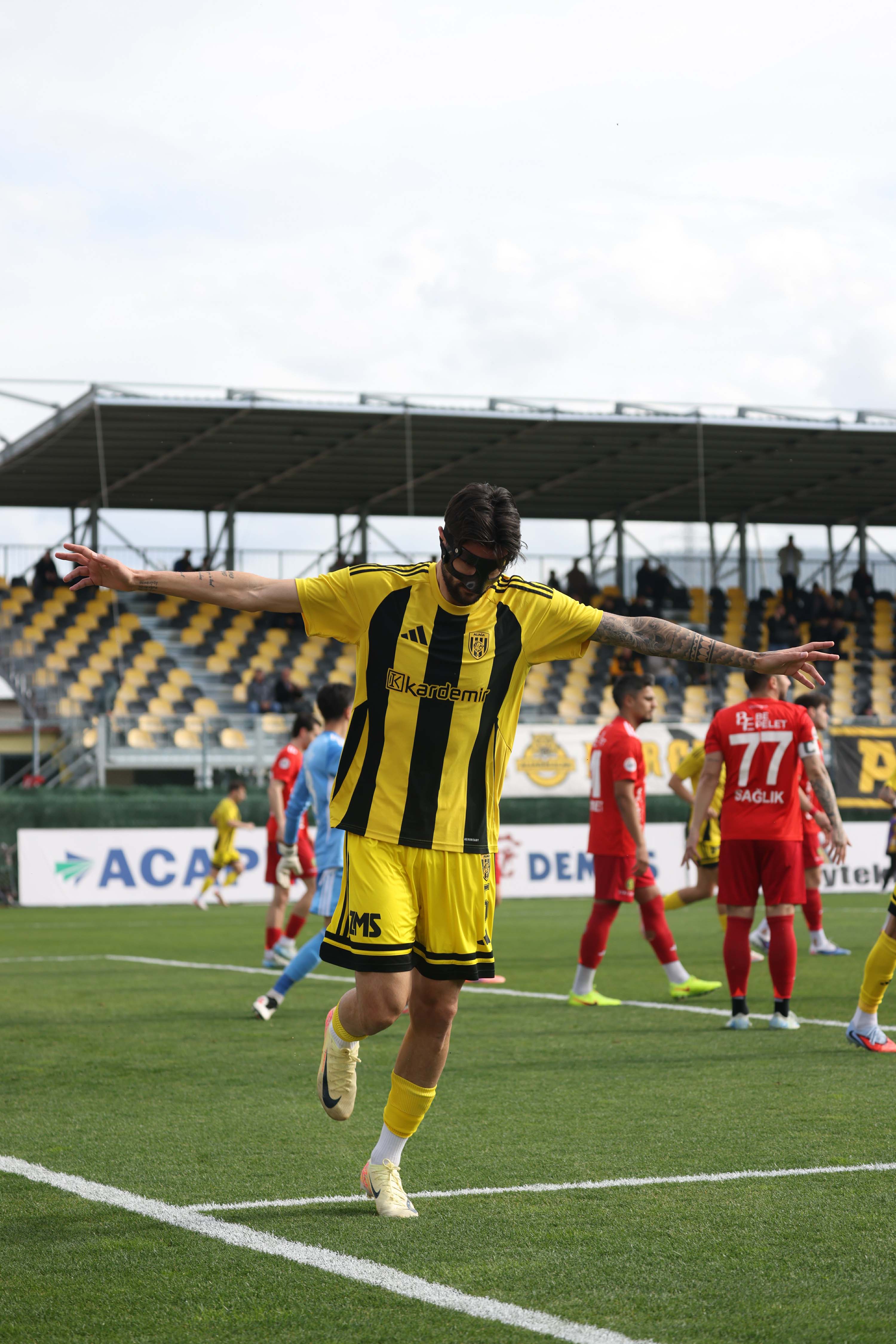 İlk devreyi 2-1 önde tamamlayan Aliağa FK ikinci yarıya da hızlı giriş yaptı ve 46’ncı dakikada Mertcan Açıkgöz’ün golüyle farkı ikiye çıkardı: 3-1.