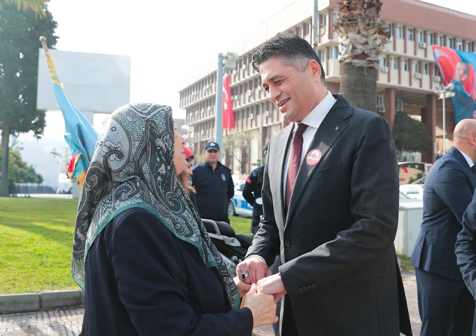 Resmi törende; Aliağa Kaymakamlığı, Garnizon Komutanlığı, Belediye Başkanlığı, Türkiye Harp Malulü Gaziler Şehit Dul Ve Yetimleri Derneği İl Temsilciliği, Türkiye Muharip Gaziler Derneği Aliağa Şubesi, Atatürk anıtına çelenk sundu. Çelenk sunumu sonra saygı duruşunda duruldu ve İstiklal Marşı okundu.