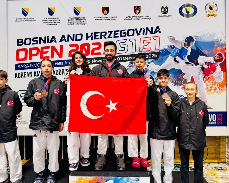 Aliağa Gençlik Merkezi Spor Kulübü taekwondo sporcuları, Avrupa Taekwondo Federasyonu tarafından Bosna Hersek’in Saraybosna kentinde düzenlenen Bosnia And Herzegovina Open 2025 – E1 turnuvasında büyük bir başarıya imza attı. 18 ülkeden 1100 sporcunun katıldığı dev organizasyonda tatamiye çıkan Aliağalı sporcular, 2’si gümüş 2’si bronz olmak üzere toplam 4 madalya kazandı.