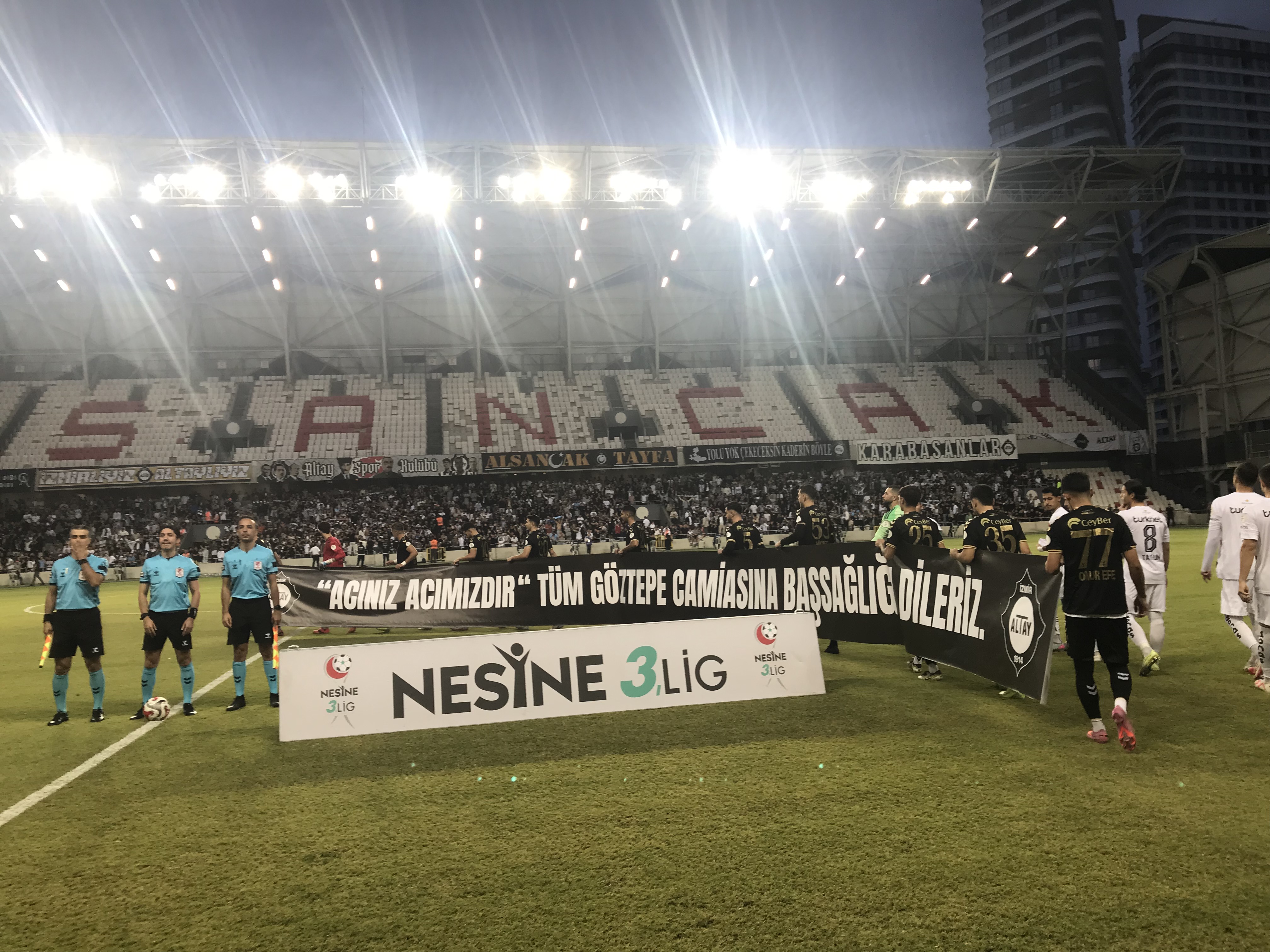 Altay Spor Kulübü, Beşiktaş maçı sonrası cinayete kurban giden Göztepe taraftarı Emircan Övüç için pankart hazırladı. Siyah-beyazlı takımın oyuncuları Eskişehirspor müsabakasına çıkarken taşıdıkları pankartta, "Acınız acımızdır. Tüm Göztepe camiasına başsağlığı dileriz" ifadelerine yer verdi. Karşıyaka da geçen hafta pankartla sahaya çıkarak Göztepe'ye başsağlığı dilemişti. (DHA)