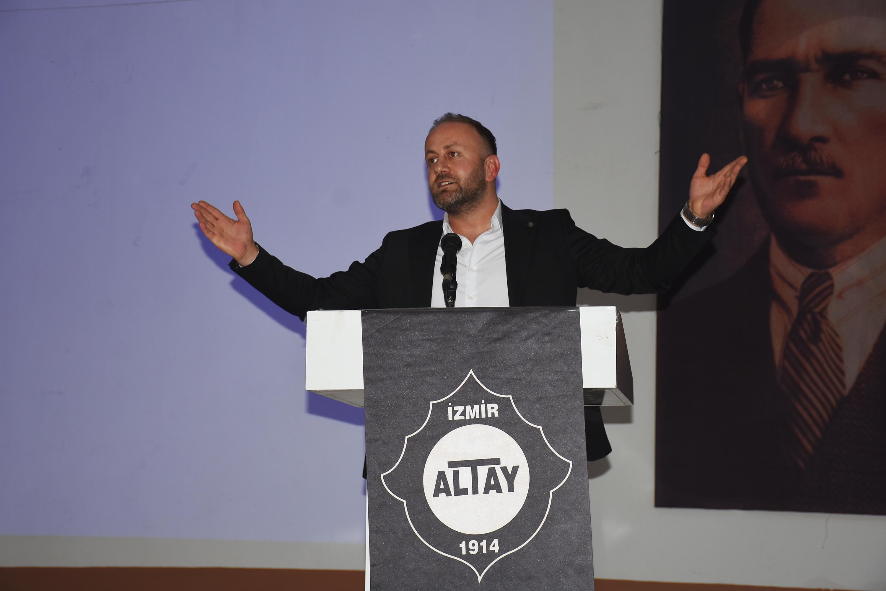 Altay’da Başkan Sinan Kanlı yönetimi ibra edilirken, üyeler Sinan Kanlı’nın göreve devam etmesi yönünde tezahüratlar yaptı. İlk etapta bu talebi kabul etmeyen Kanlı, başkan adayının çekilmesi üzerine şöyle konuştu: