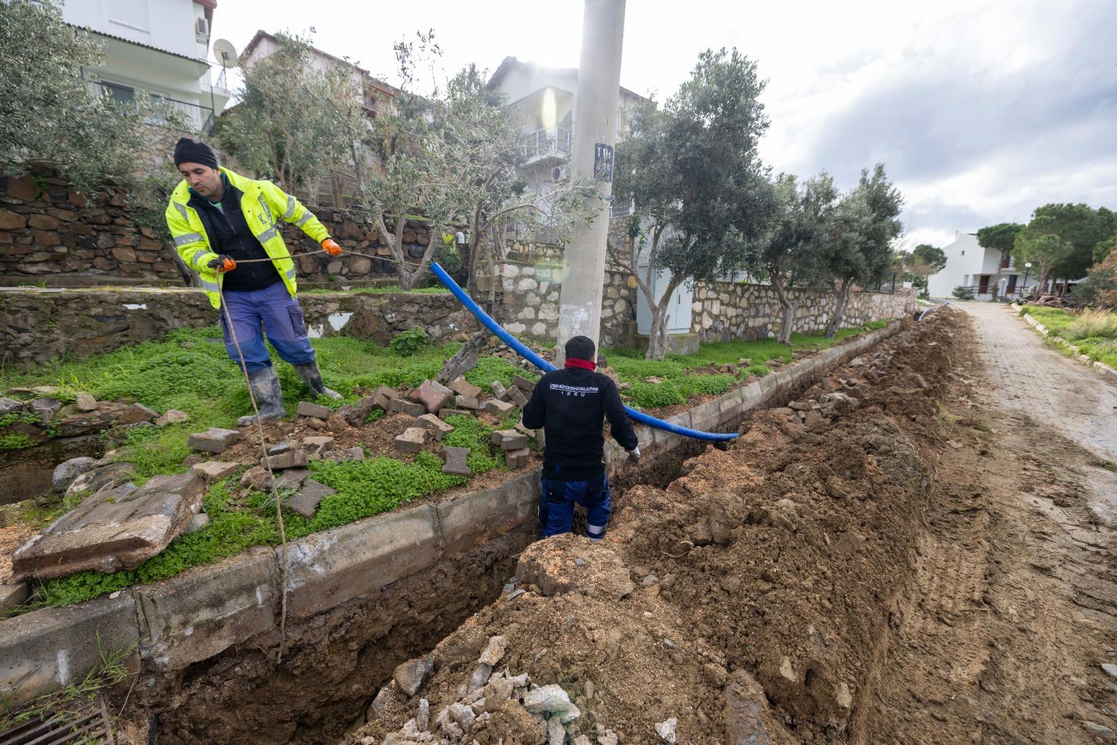 İçme suyu yatırımları kapsamında 4,25 milyar TL’lik çalışma tamamlandı. Kent genelinde 674 kilometre yeni içme suyu hattı imalatı gerçekleştirildi, 239 kilometrelik mevcut hattın bakım-onarımı yapıldı, 376 kilometrelik isale hattında periyodik bakım, onarım ve kontroller gerçekleştirildi. Ayrıca 156 adet yeni sondaj kuyusu açıldı. Halkapınar Kuyuları İletim Hatları ve 7 bin metreküplük depo inşaatı tamamlanarak sisteme kazandırıldı. Menemen Emiralem ve Türkelli mahalleleri ile Yeni Foça Grup İnşaatı kapsamında 109 kilometrelik içme suyu hattı tamamlandı. Menemen Seyrek merkez ve çevre mahallelerinde 75 kilometrelik içme suyu hattı imalatı bitirildi. Ödemiş Sekiköy Paket İçme Suyu Arıtma Tesisi hizmete alındı. Devam eden projeler kapsamında Çeşme’de 284 kilometrelik içme suyu imalatı tamamlanırken branşman bağlantıları sürüyor. Seferihisar’da 252 kilometrelik hattın 216 kilometresi tamamlandı. Gaziemir Sarnıç’ta 75 kilometrelik hattın 19 kilometresi, Ödemiş Merkez’de 8,56 kilometrelik hattın 3,96 kilometresi tamamlandı. Kiraz Cevizli, Bahçearası ve Mersinlidere mahallelerinde 88,5 kilometrelik hattın 39,8 kilometresi bitirildi. Seferihisar’da 2.000 metreküplük su deposu inşaatının yüzde 30’u tamamlandı. Kiraz 1. Etap ikmal inşaatı devam ediyor.