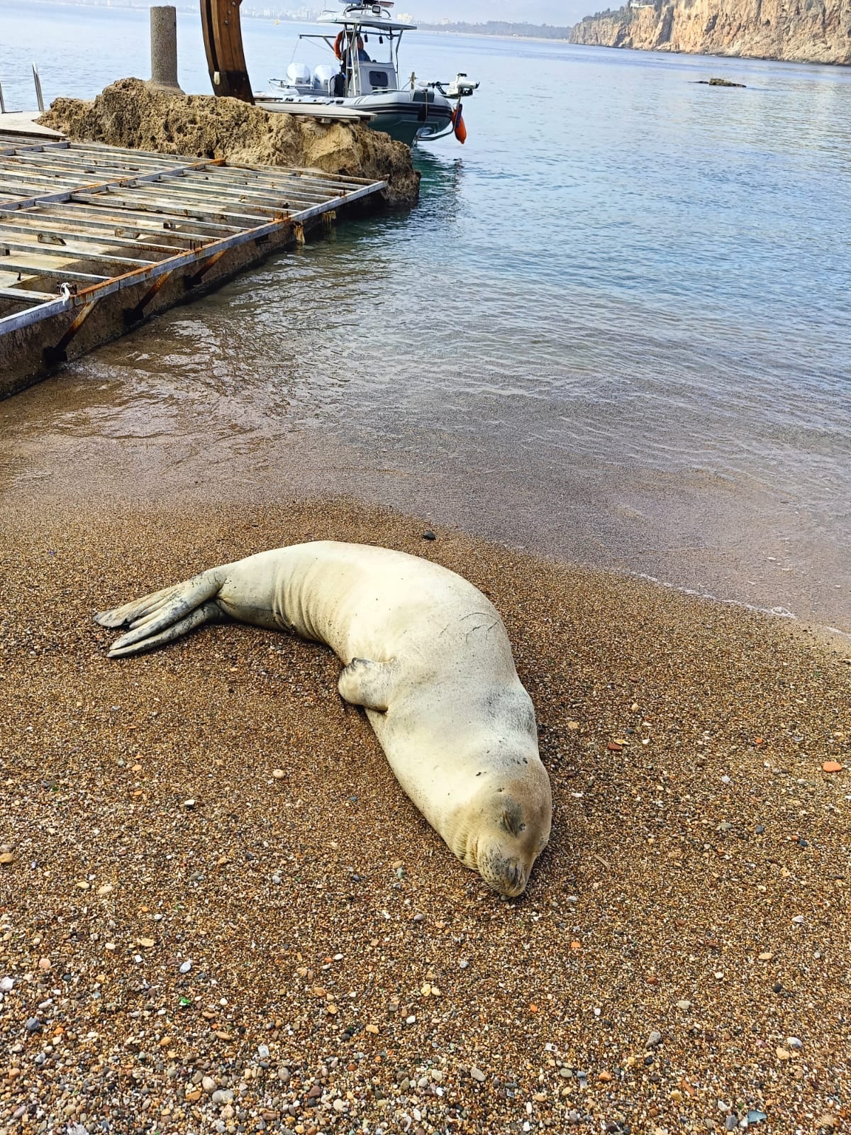 .Antalya Valiliği tarafından yapılan açıklamaya göre, Mermerli Plajı kıyısında bir Akdeniz fokunun kumsalda hareketsiz yattığı ihbarı üzerine Antalya Emniyet Müdürlüğüne bağlı Deniz Limanı Şube Müdürlüğü ekipleri bölgeye sevk edildi.