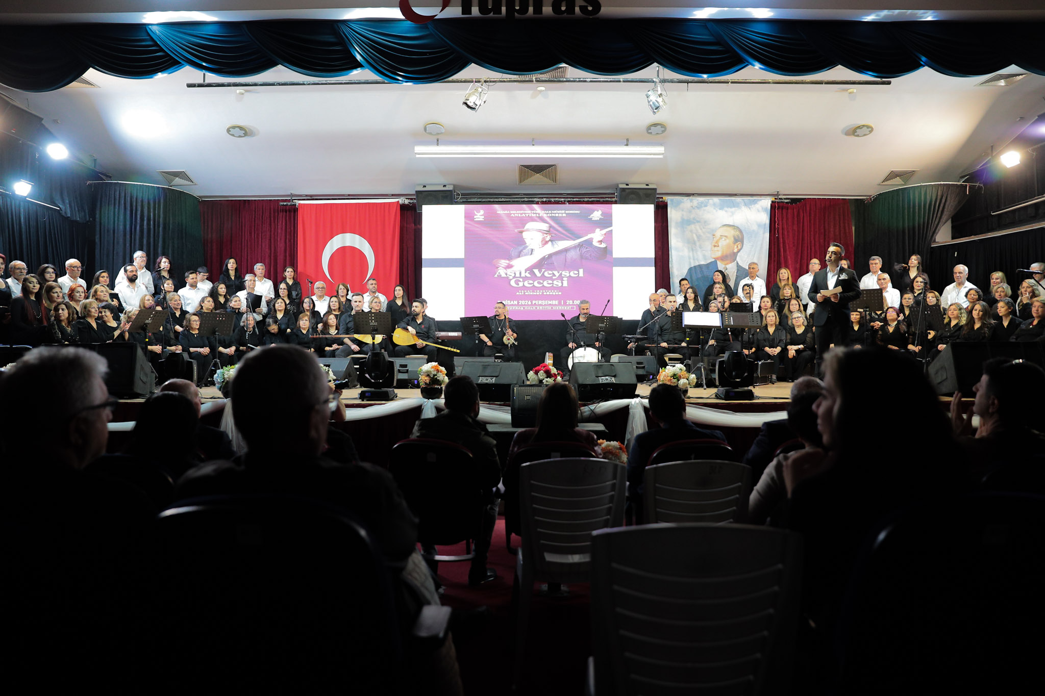 Ege Üniversitesi Devlet Türk Musikisi Konservatuvarı Öğretim Görevlisi ve ASEV Türk Halk Müziği Eğitmeni Dr. Ali Hikmet Gökçen yönetimindeki dev koro, profesyonel enstrüman ekibinin eşliğinde sahne aldığı performansıyla büyük beğeni topladı. Konserde, Aşık Veysel’in hayatından kesitler sunulurken, ozanın kendi sesinden şiirlerinin yer aldığı video gösterimleri de izleyiciyle paylaşıldı. Gecenin açılışı ise “Havalanma Telli Turnam” ve “Anlatmam Derdimi Dertsiz İnsana” türküleriyle yapıldı.