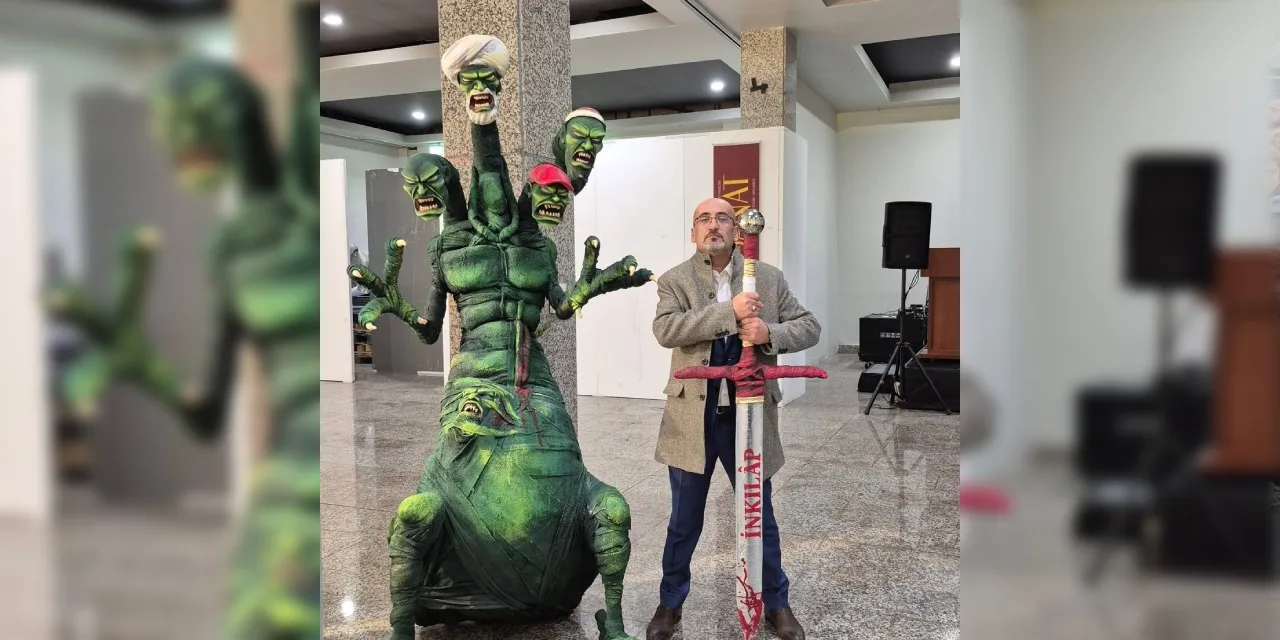 Söz konusu heykelin, 1947’de yayımlanan Mizah dergisindeki bir çizimden esinlenerek hazırlandığı belirtiliyor. Çizimde Atatürk’ün, gericiliği simgeleyen dört başlı yeşil canavarı “İnkılap” kılıcıyla alt ettiği bir sahne yer alıyordu.