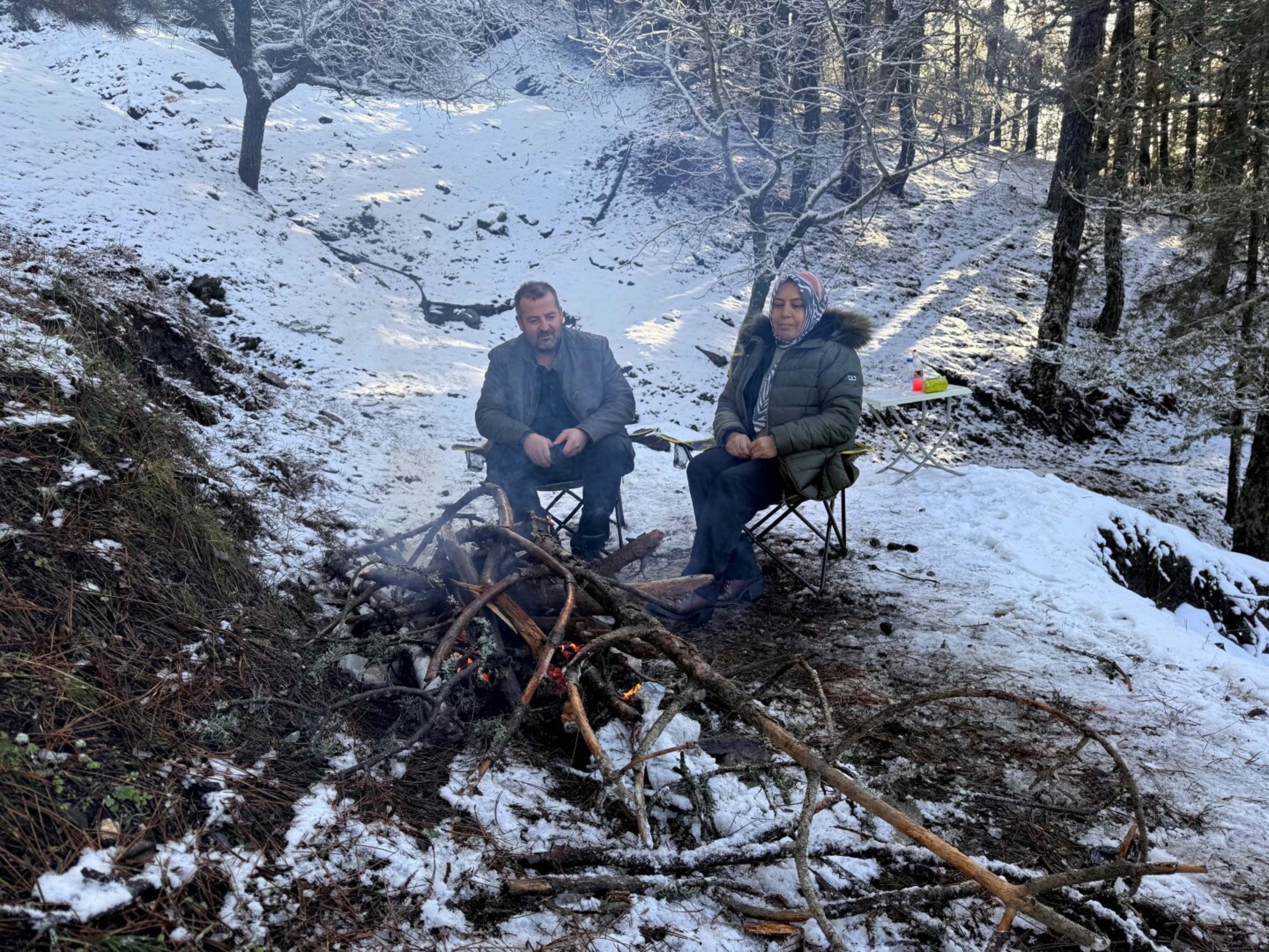 Bazı vatandaşlar kartopu oynarken, bazıları ise ateş yakarak güzel havanın keyfini çıkardı.(DHA)