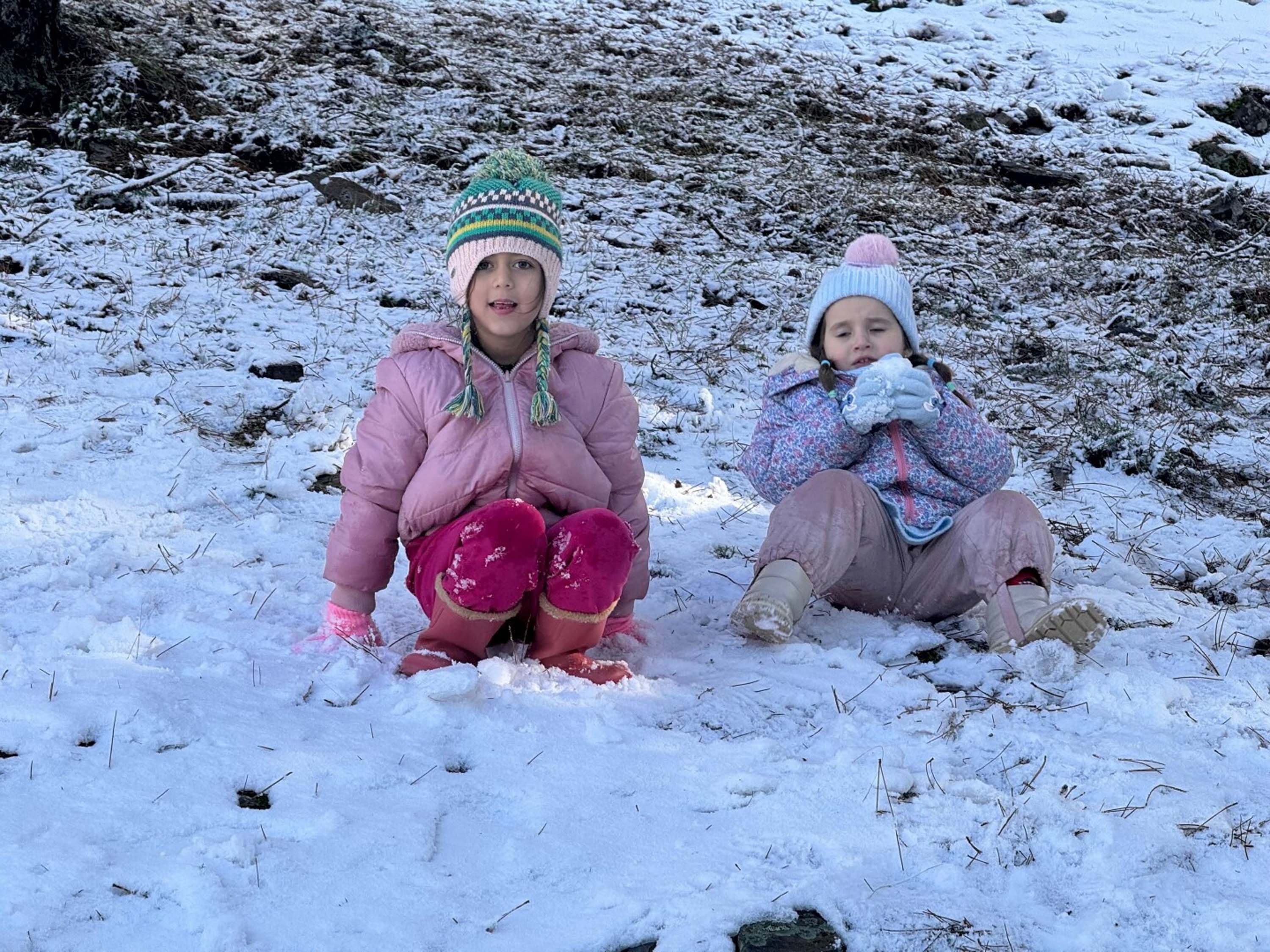 Yaylada karın tadını çıkaran çocuklar ve aileler, beyaz örtüyle kaplanan manzara eşliğinde fotoğraf çektirdi.
