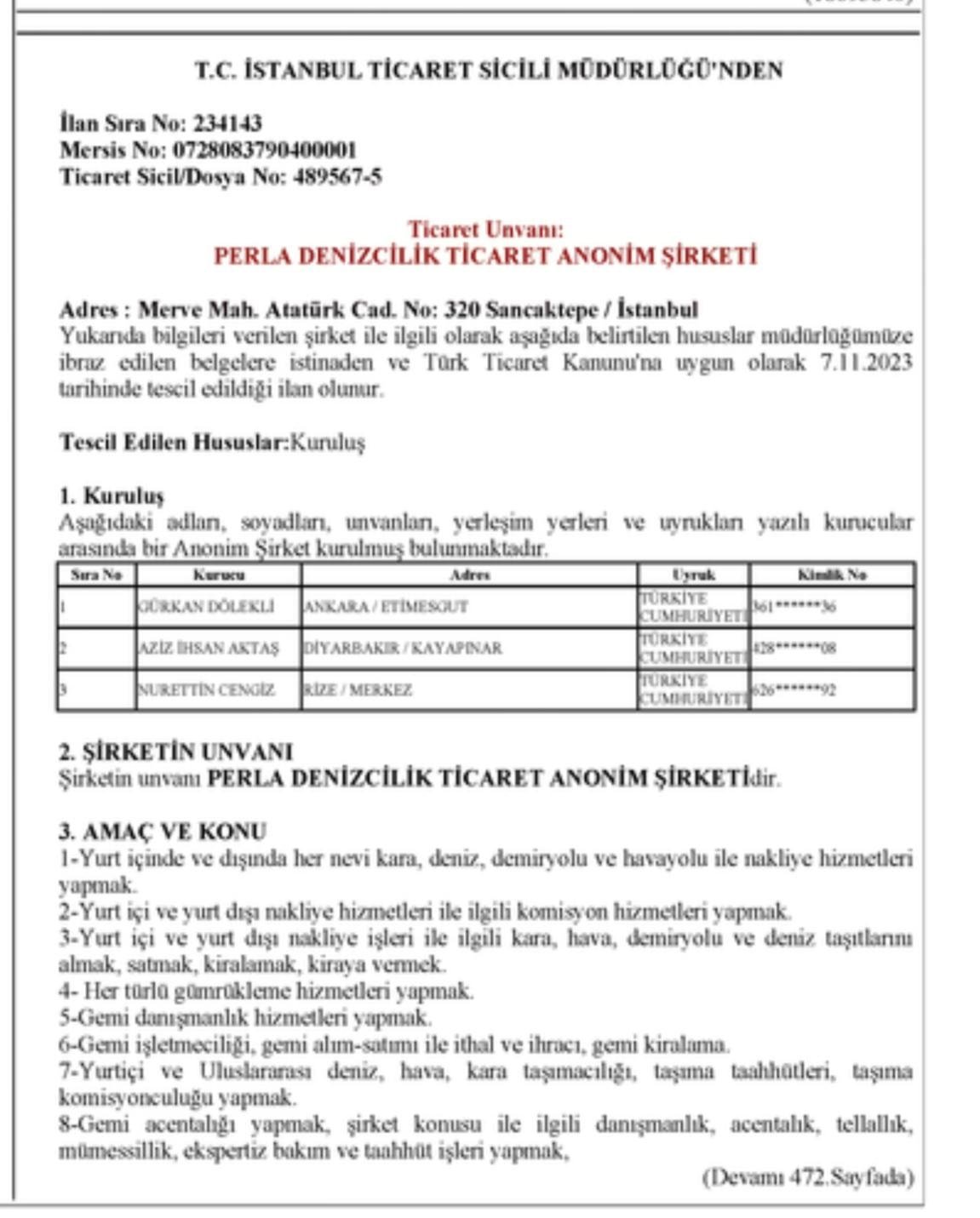 Buna göre, Aziz İhsan Aktaş’ın resmi olarak Gürkan Dölekli ve Nurettin Cengiz ile ortak olduğu İstanbul Gaziosmanpaşa TEM otoyolu üzerindeki 76 pompalık Elif-Güven LPG Akaryakıt Dağıtım Sanayi Ticaret Anonim Şirketindeki hisseleri ile akaryakıt istasyonu ve yine Gürkan Dölekli ile ortak olduğu ve gemilerle Kıbrıs başta olmak üzere Uluslararası akaryakıt taşımacılığı yaptığı Perla Denizcilik hisseleri, Aydın, Isparta, Şanlıurfa, Diyarbakır, Gaziantep AKP’li belediyelerden araç kiralama ve temizlik ihaleleri aldığı Barka Atık Yönetim Taşımacılık Mühendislik Mimarlık ve Proje Danışmanlık Limited şirketine de kayyum atandı.