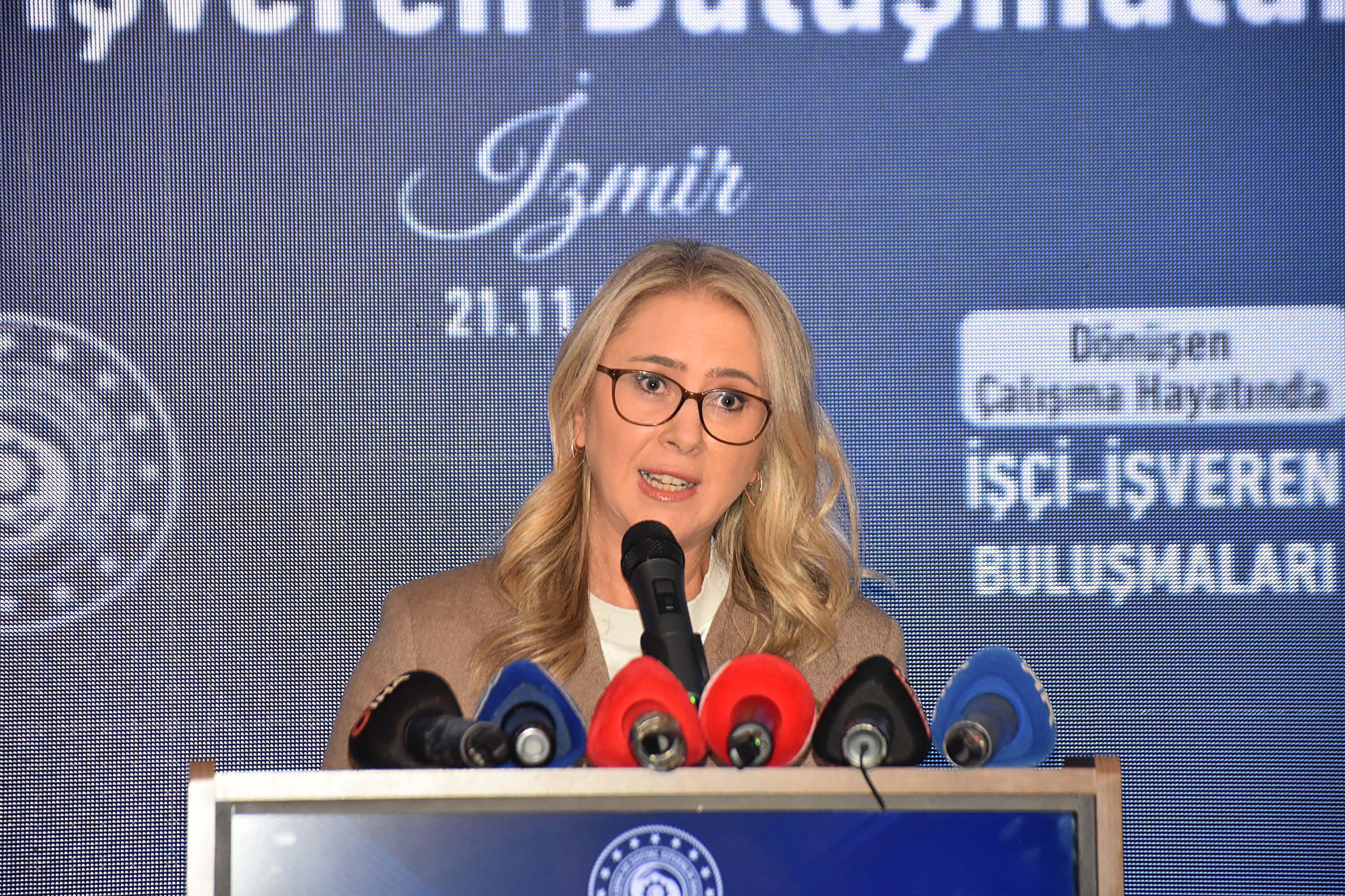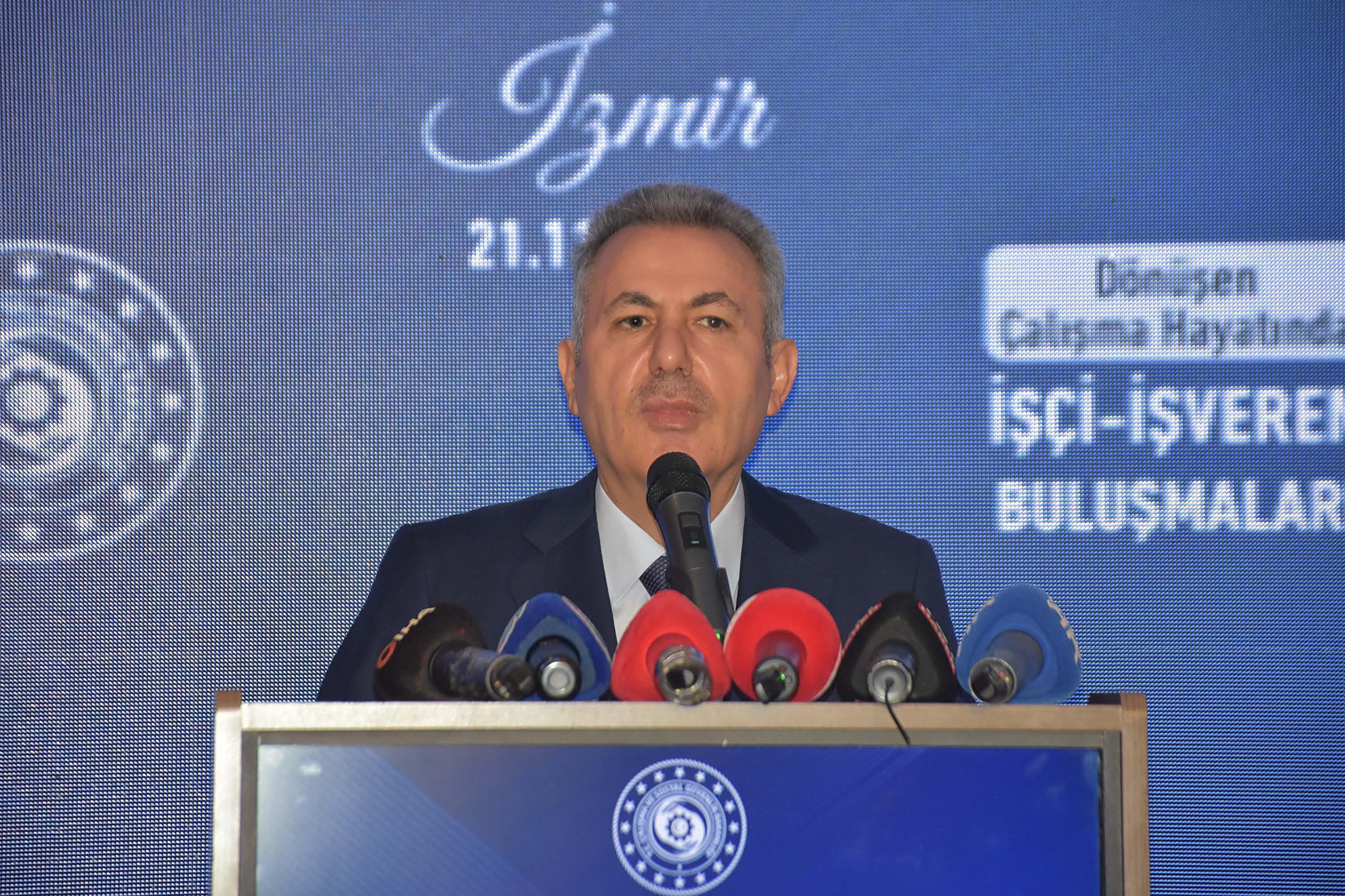 Çalışma ve Sosyal Güvenlik Bakanı Vedat Işıkhan, İzmir programı kapsamında bir otelde 'Dönüşen Çalışma Hayatında İşçi- İşveren Buluşmaları'na katıldı. Buluşmaya İzmir Valisi Süleyman Elban, AK Parti İzmir Milletvekili Ceyda Bölünmez Çankırı, oda ve STK temsilcileri ile kent protokolü katıldı. Buluşmada konuşan Bakan Işıkhan, İzmir'in ‘Yeşil ve Dijital Dönüşüm Sürecinde, İşçilerin Beceri Uyumlarının Geliştirilmesi Projesi’ kapsamında, ülkenin dört bir yanında sürdürülen 'Dönüşen Çalışma Hayatında İşçi ve İşveren Buluşmaları' projesinin 10’uncu durağı olduğunu söyleyerek, "Bu toplantı serisi Türkiye’nin yeşil ve dijital dönüşüm sürecinde; çalışma hayatının tüm taraflarını aynı platformda buluşturan, bu dönüşüme ilişkin farkındalığı ve ortak anlayışı artıran, sürecin farklı bölgelerde ve sektörlerde nasıl yaşandığını görmemize imkan sağlayan ve sosyal diyaloğu güçlendiren önemli bir istişare mekanizmasıdır" dedi. İzmir’in Türkiye'nin en hızlı gelişen, dinamik üretim merkezlerinden birisi olduğunu ifade eden Bakan Işıkhan, buluşmada amaçlarının yeşil ve dijital dönüşümün; iş gücü piyasalarına etkilerini, sunduğu fırsatları ve beraberinde getirdiği riskleri kapsamlı biçimde değerlendirmek, işçileri, işverenleri ve tüm paydaşları bu sürece en güçlü şekilde hazırlamak olduğunu söyledi.
