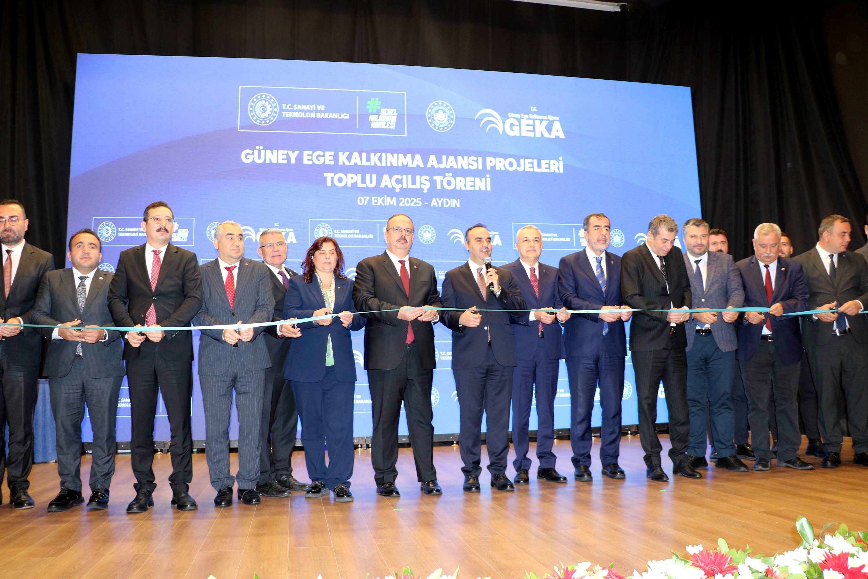 Sanayi ve Teknoloji Bakanı Mehmet Fatih Kacır, Adnan Menderes Üniversitesi Atatürk Kongre merkezinde düzenlenen Güney Ege Kalkınma Ajansı (GEKA) Toplu Açılış Töreni'ne katıldı. Törende Bakan Kacır'ın yanı sıra Aydın Valisi Yakup Canbolat, Aydın Büyükşehir Belediye Başkanı Özlem Çerçioğlu, AK Parti Aydın Milletvekili Mustafa Savaş ve Adnan Menderes Üniversitesi Rektörü Bülent Kent yer aldı. Törende konuşan Bakan Kacır, “Bugün şehrimize yeni yatırımlar kazandırmak adına elimiz, heybemiz dolu geldik. Şehrimizin kalkınmasına ve büyümesine katkı sağlayacak 10 projeyi Güney Ege Kalkınma Ajansımız eliyle Aydın'ımıza kazandırıyoruz. Şehrimizi yeni yatırımlarla ihya etmeye, Ege'nin parlayan yıldızı haline getirmeye inşallah devam edeceğiz" dedi.