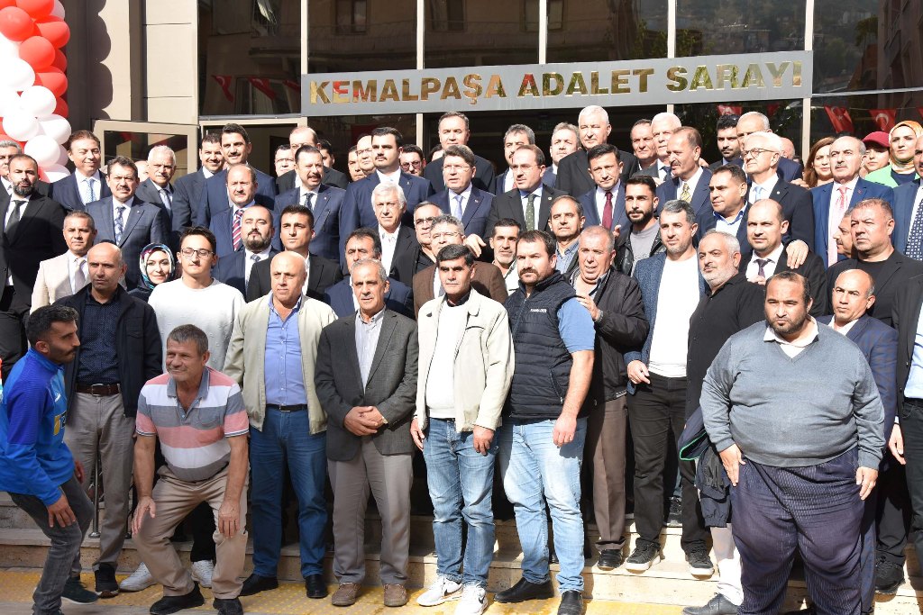 Törende konuşan AK Parti Genel Sekreteri ve İzmir Milletvekili Eyyüp Kadir İnan da adalet sarayının hayırlı olması temennisinde bulunarak, "Kemalpaşamıza ve yargı camiamıza imza niteliğinde bir yatırımı kazandırmanın mutluluğunu yaşıyoruz. Marifet iltifata tabidir. 1,5 sene gibi kısa bir dönemde, tasarruf tedbirlerinin hakim olduğu bir dönemde Adalet Bakanlığımız, bölgemize bu hizmeti kazandırdı. Tüm bakanlıklarımız kollarını sıvadılar, İzmirimizin sorunları için şehrimize çok yoğun destek veriyorlar. Fakat biz bu yapıları kazandırırken, 1,5 sene gibi kısa bir sürede bu yapıyı kazandırırken, şehir hastanelerini kazandırırken, statlarımızı, sağlık komplekslerimizi kazandırırken maalesef yerel yönetimden aynı hızı göremiyoruz. Biz bu kadar büyük gayret ve destek ortaya koyarken aksine maruz kaldığımız eleştirileri de kabul etmiyoruz. Büyükşehir Belediye Başkanı Cemil Tugay, 'İzmir'e ayrımcılık yapıyorlar, İzmir'e farklı bakıyorlar' diyor. Biz de buradan bu haksız eleştirilere işte Kemalpaşa'da açtığımız muhteşem yeni bir adalet sarayını İzmir'e armağan ederek cevabımızı vermiş oluyoruz. Bayraklı'da büyük bir lojman ihtiyacı vardı. Yine büyük bir lojman satın alımını hızlıca gerçekleştirdik. Diğer konularda da Adalet Bakanlığımız bizlere çok büyük destekler veriyor. Biz de bu destekleri vatandaşlarımızla paylaşmakta kararlıyız" dedi.