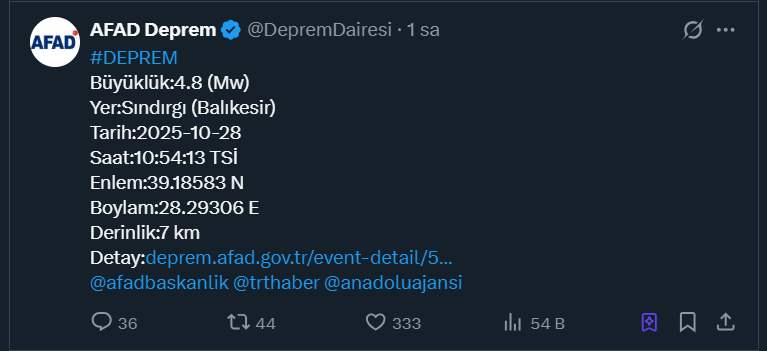 4.8 BÜYÜKLÜĞÜNDE KORKUTAN DEPREM