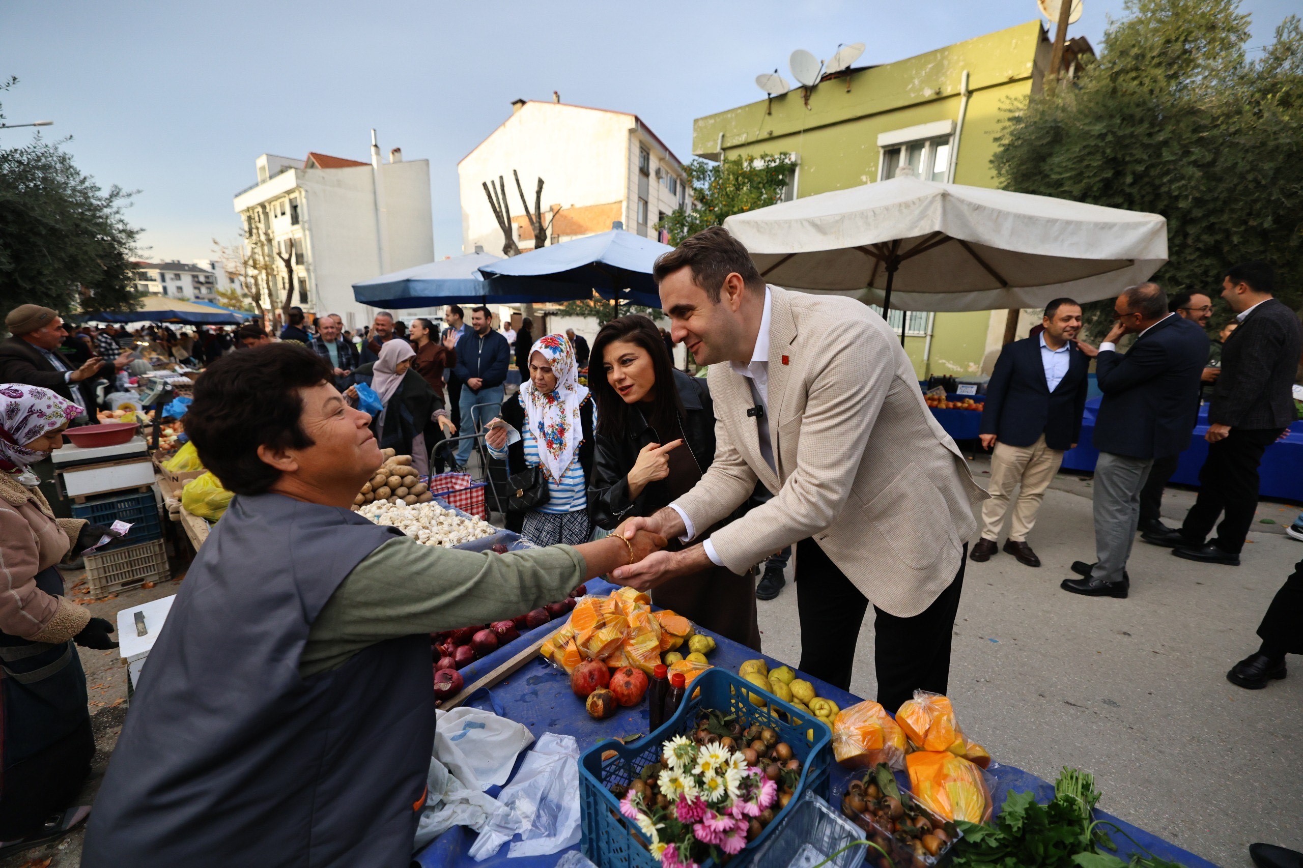 İlçe programında Selçuk Esnaf Odası Başkanı Okan Kamak’ı ziyaret eden CHP İzmir İl Başkanı Çağatay Güç, ilçede kurulan pazarda pazarcı esnafı ve vatandaşlarla da bir araya geldi.