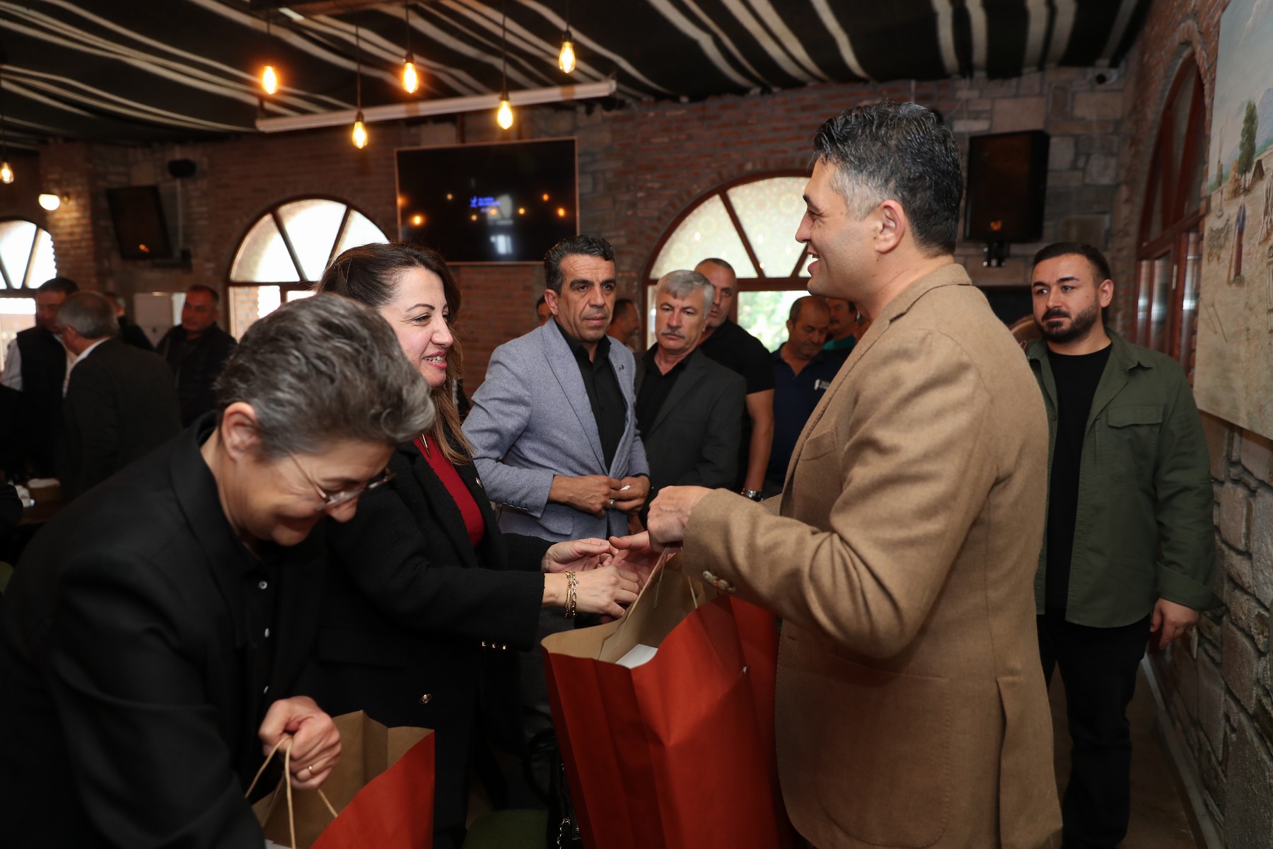 Kahvaltı programı sonrası Aliağa Kaymakamı Zekeriya Güney ve Aliağa Belediye Başkanı Serkan Acar, muhtarlara günün anısına hediyelerini takdim etti.