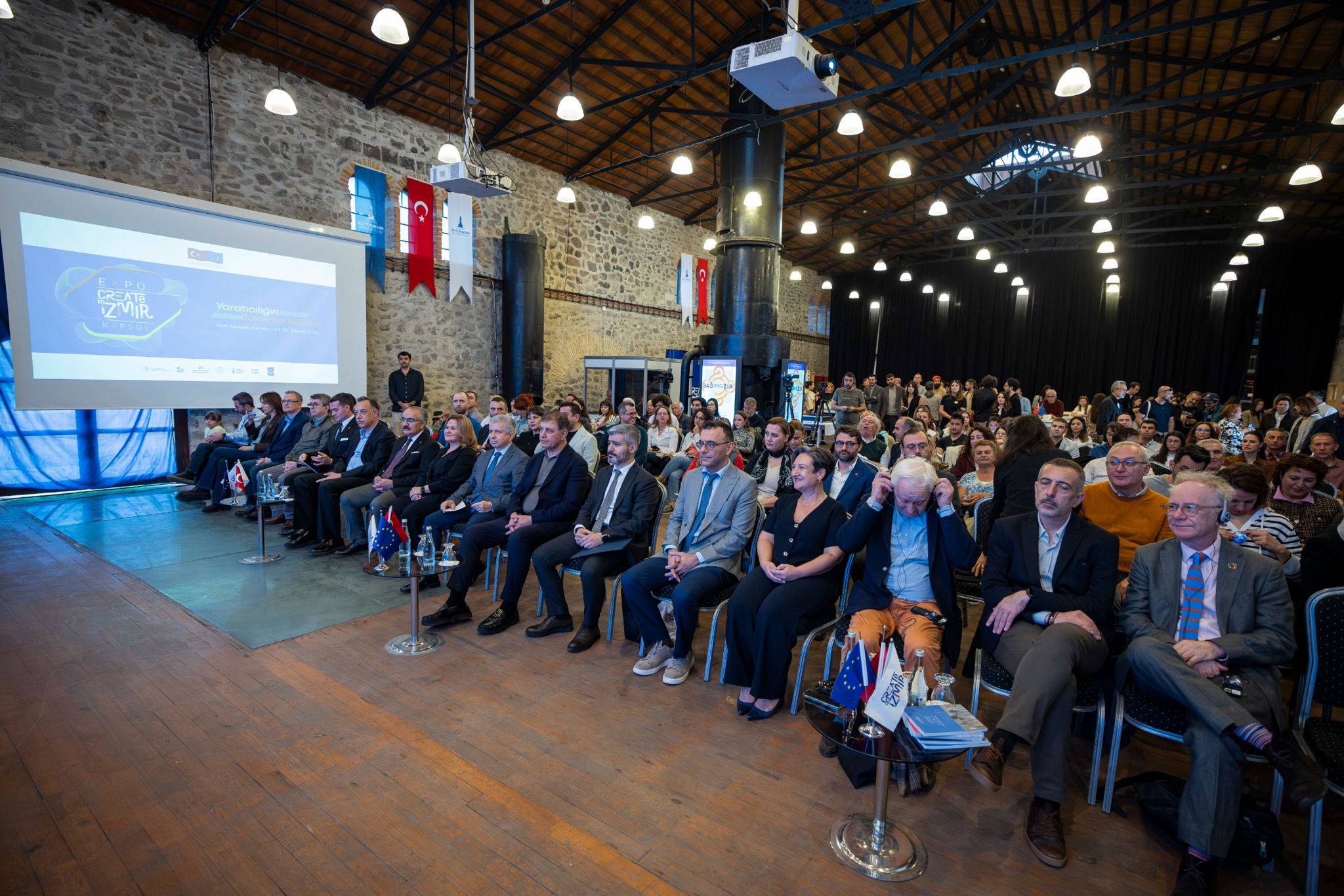 Yerel yönetim, sivil toplum kuruluşları ve iş dünyasının temsilcileri ile akademisyenlerin yer aldığı, Create in İzmir proje sunumunun yapıldığı açılış konferansında konuşan İzmir Büyükşehir Belediye Başkanı ve İzmir Vakfı Yönetim Kurulu Başkanı Dr. Cemil Tugay, “Şehrimizin geleceğiyle ilgili neler yapabiliriz konusunu ele alıyoruz. Yaratıcılığı tam olarak nasıl konumlandırmamız gerektiğini önce düşünmeliyiz. Bu bir kamusal görev midir? Aslında toplumun sahip olması gereken bir kültür müdür? Bunun cevabının verilmesi lazım. İnovasyon ve yaratıcılık konusunda bir kültür oluşturmaya ihtiyacımız var. Bir yeri, bir grup insanı, bir lokasyonu tanımlarken bir geçmişi olduğunu bilmeliyiz. Geçmişi bugüne bağlayan bir düşünce içinde bakmamız lazım. Ama bir gelecek de olacak, buna da karar vermemiz lazım” diye konuştu.
