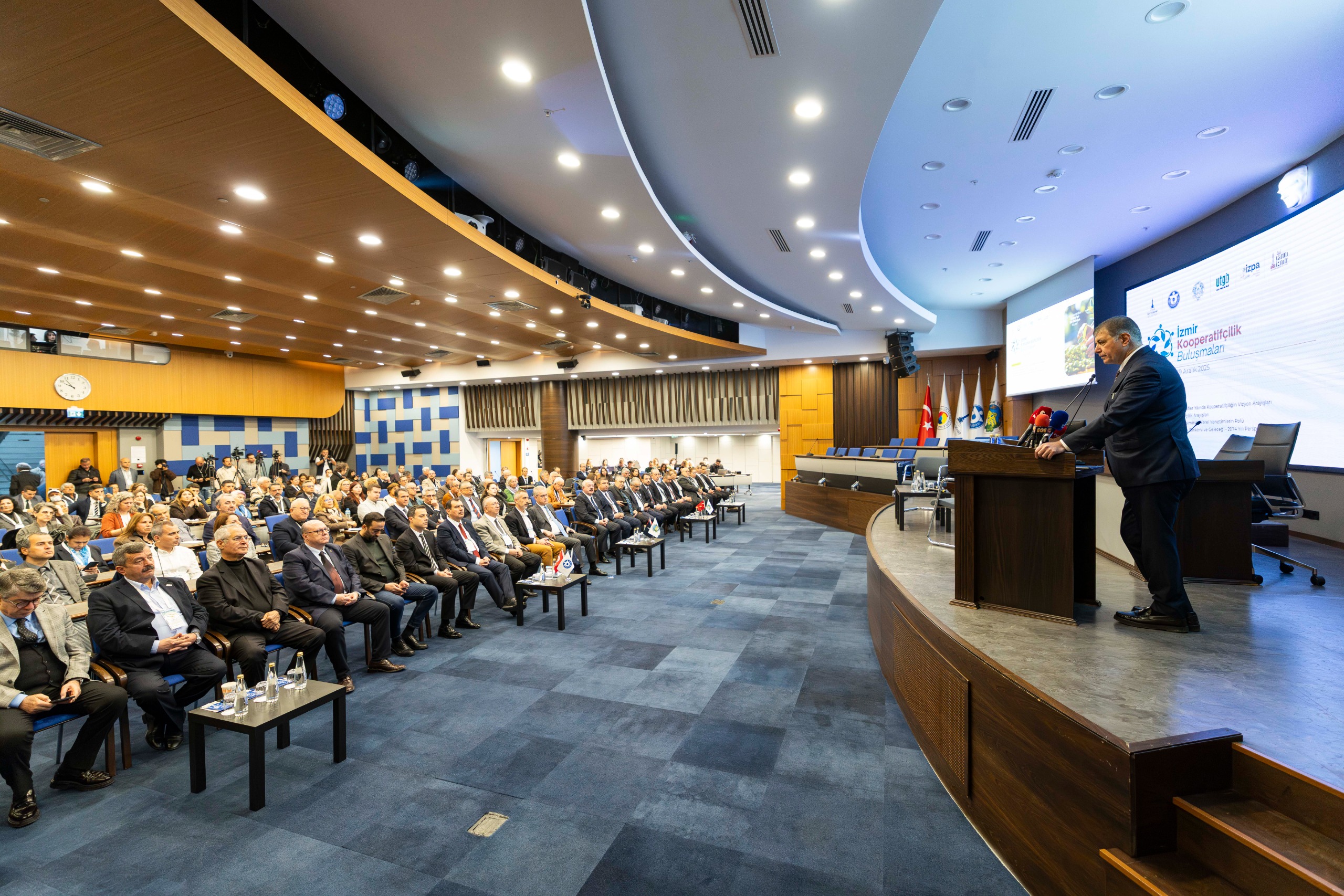 İzmir Büyükşehir Belediye Başkanı Dr. Cemil Tugay, 2025’in Birleşmiş Milletler (BM) tarafından “Uluslararası Kooperatifler Yılı” ilan edilmesi nedeniyle İzmir Ticaret Odası’nda (İZTO) düzenlenen İzmir Kooperatifçilik Buluşmaları programına katıldı. “Kooperatifler Daha İyi Bir Dünya Kurar” anlayışıyla organize edilen buluşmada yerel yönetimlerin, iş dünyasının, kooperatiflerin temsilcileri ve bürokratlar, alanlarında uzman isimler ile akademisyenler yer aldı.