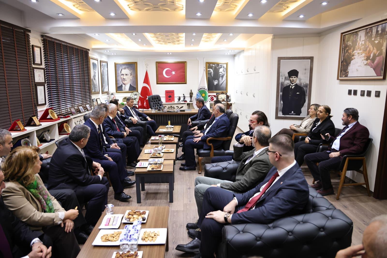 Başkan Tugay’a Zonguldak Tabip Odası Başkanı Prof. Dr. Eksal Kargı, Türk Tabipleri Birliği Merkez Konseyi Genel Sekreteri Prof. Dr. Önder Okay ve Çağdaş Gazeteciler Derneği Başkanı Ali Ayaroğlu da eşlik etti. İl Başkanı Dural, Tugay’ın ziyaretinden duyduğu memnuniyeti dile getirerek, “Enerjinin ve emeğin başkentine hoş geldiniz. İktidar yolculuğumuzda en büyük dayanağımız yerel yönetimlerimizdir” diye konuştu. İzmir’in selamını getirdiğini aktaran Başkan Tugay ise “Zonguldak bize uzak ama zihnimizde çok özel yeri olan bir kent. Türkiye’de sanayinin gelişmesinde lokomotif kentlerden birisi. Bülent Ecevit’in şehri aynı zamanda. Emeğin şehri. Bu anlamda bizim için çok değerli. Türkiye’nin her yerinde ve İzmir’de de Zonguldak hep özel bir yer olarak bilinir” dedi. “CHP ailesi olarak büyük bir aileyiz” diyen Başkan Tugay, “İl ve ilçe örgütlerimizin çalışmalarını biliyorum. Genel Başkanımız Özgür Özel çok güzel bir tanımlama yaptı, ‘buralar bizim baba ocağımız’ dedi. Bir yere gittiğimizde önce baba ocağını ziyaret edip sonra programımıza başlıyoruz. Burada olmaktan çok mutluyum” dedi.