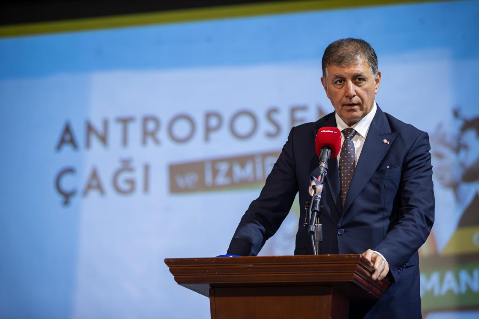 İzmir Büyükşehir Belediye Başkanı Dr. Cemil Tugay, Yenigün Gazetesi'nin organize ettiği “Antroposen Çağı ve İzmir” konulu söyleşiye katıldı. İzmir Büyükşehir Belediyesi Şehir Tiyatroları Elhamra Sahnesi'nde yapılan söyleşide gıda ve su krizi ile orman yangınları ele alındı. Programa Cumhuriyet Halk Partisi (CHP) Parti Meclisi Üyesi Dr. Baran Bozoğlu, İZSU Genel Müdürü Gürkan Erdoğan, akademisyenler ve sivil toplum kuruluşlarının temsilcileri katıldı.