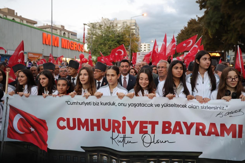 Törenin ardından akşam saatlerinde Cumhuriyet Bayramı kortej yürüyüşü gerçekleştirildi.