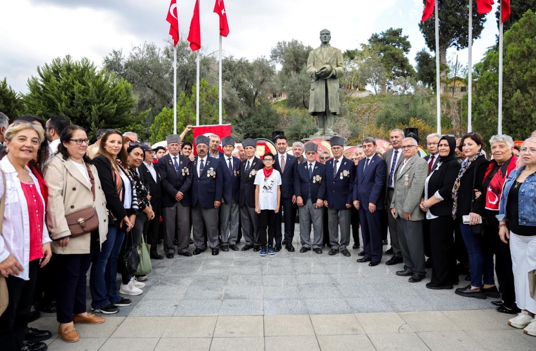 Bayraklı’da 29 Ekim Cumhuriyet Bayramı kutlamaları, Sevgi Yolu’nun sonundaki Atatürk Anıtı’nda düzenlenen çelenk sunma töreniyle başladı.