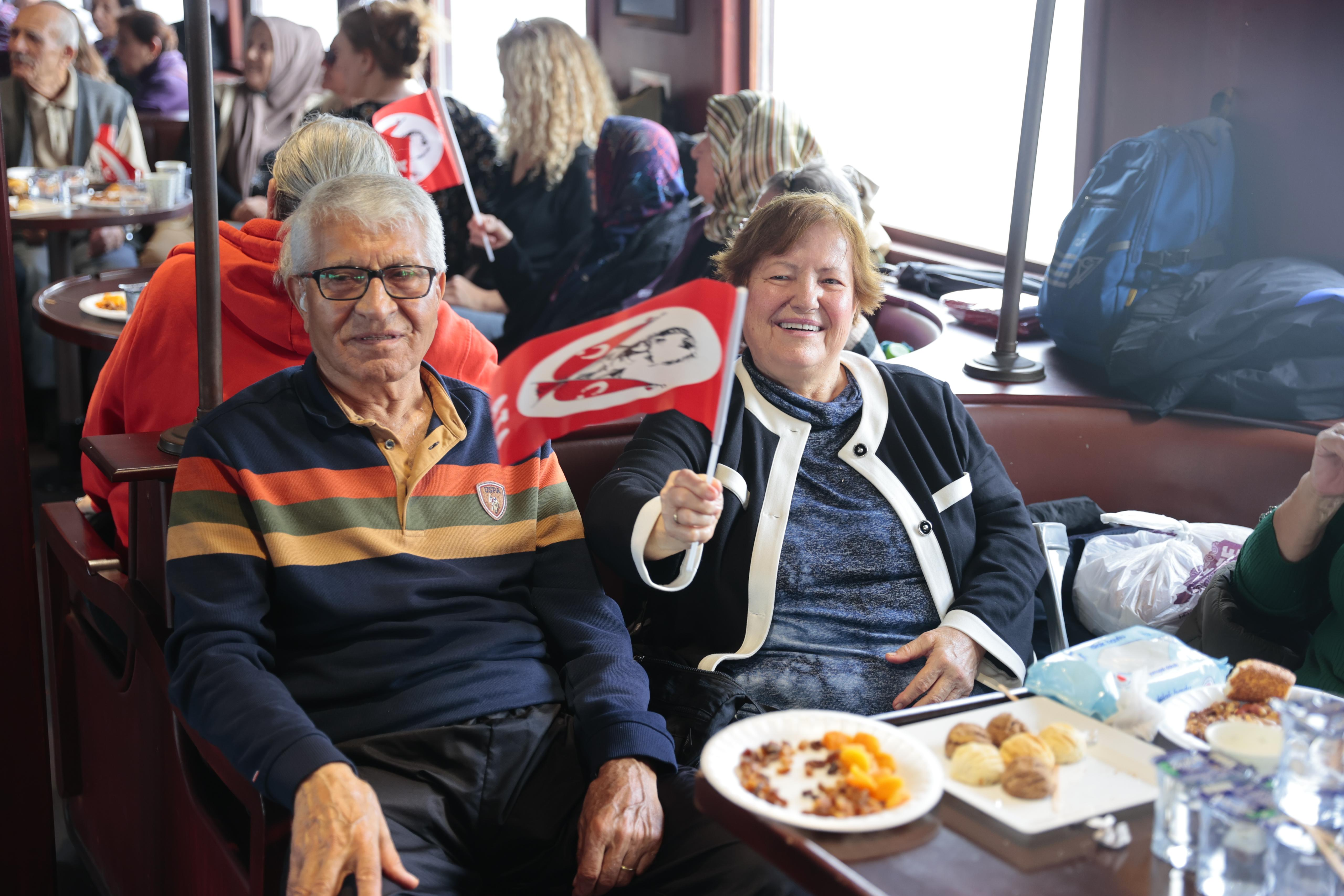Şef Bahar Almaç’ın duru sesinden türkülerle şenlenen gezide bayram coşkusu doyasıya yaşandı; İzmir Marşı ve 100. Yıl Marşı hep bir ağızdan söylendi. Cumhuriyet Bayramı sevincine Konak’ın eşsiz kıyı manzarası eşlik etti. Geziye katılanlar adına konuşan Türkiye Emekliler Derneği İzmir Şube Başkanı Zekeriya Beypınar, “Nilüfer Hanım’a sonsuz teşekkürlerimizi sunuyoruz. Bizi ihya ettiler. Cumhuriyet Bayramı’nı böyle özel bir etkinlikle kutlamaktan dolayı çok mutluyuz” dedi.