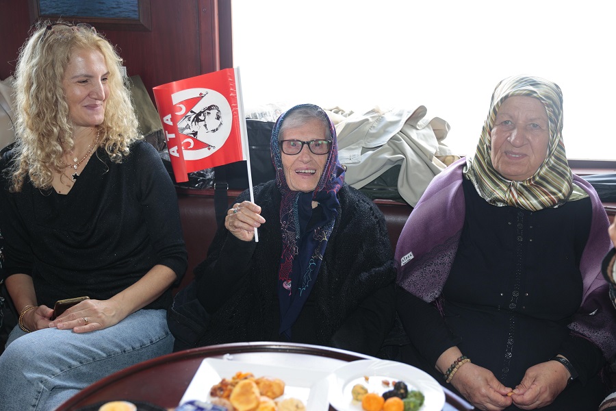 Cumhuriyet Bayramı coşkusuyla denize açılan vapurda, gezi katılımcılarına Konak Belediye Başkanı Nilüfer Çınarlı Mutlu’nun armağanı olarak günün anısına Türk bayrakları ve Nutuk verildi.