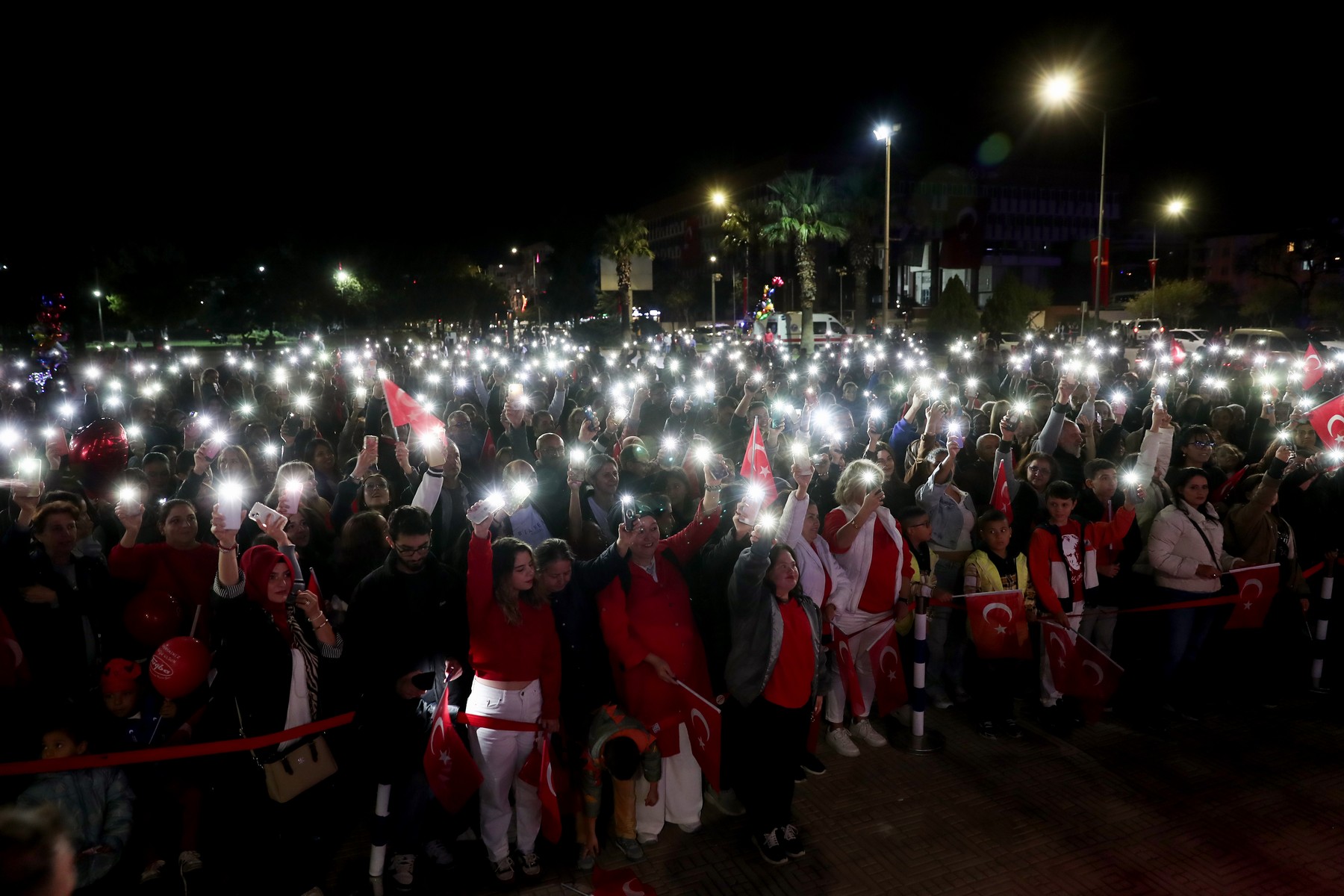 Işık gösterileri, müzik ve alkışların birleştiği atmosferde Cumhuriyet coşkusu doruğa çıktı. Aliağa Belediyesi Halk Oyunları Ekibinin sergilediği yöresel oyunlar ise izleyenlerden büyük alkış aldı.