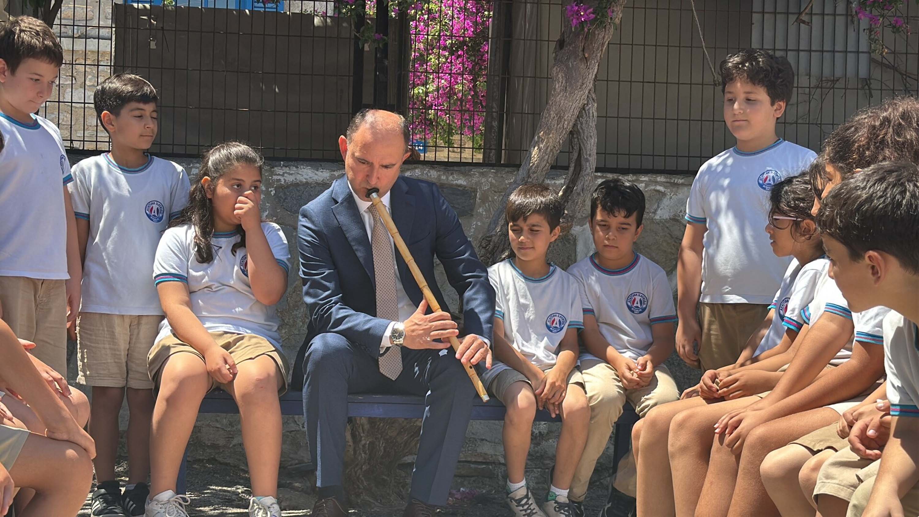 Okulda öğrencilerine ney üfleyen Turan, aynı zamanda Bodrumlu ney üstadı Neyzen Tevfik'in memleketinde ney çalmanın gurur verici olduğunu belirtti.