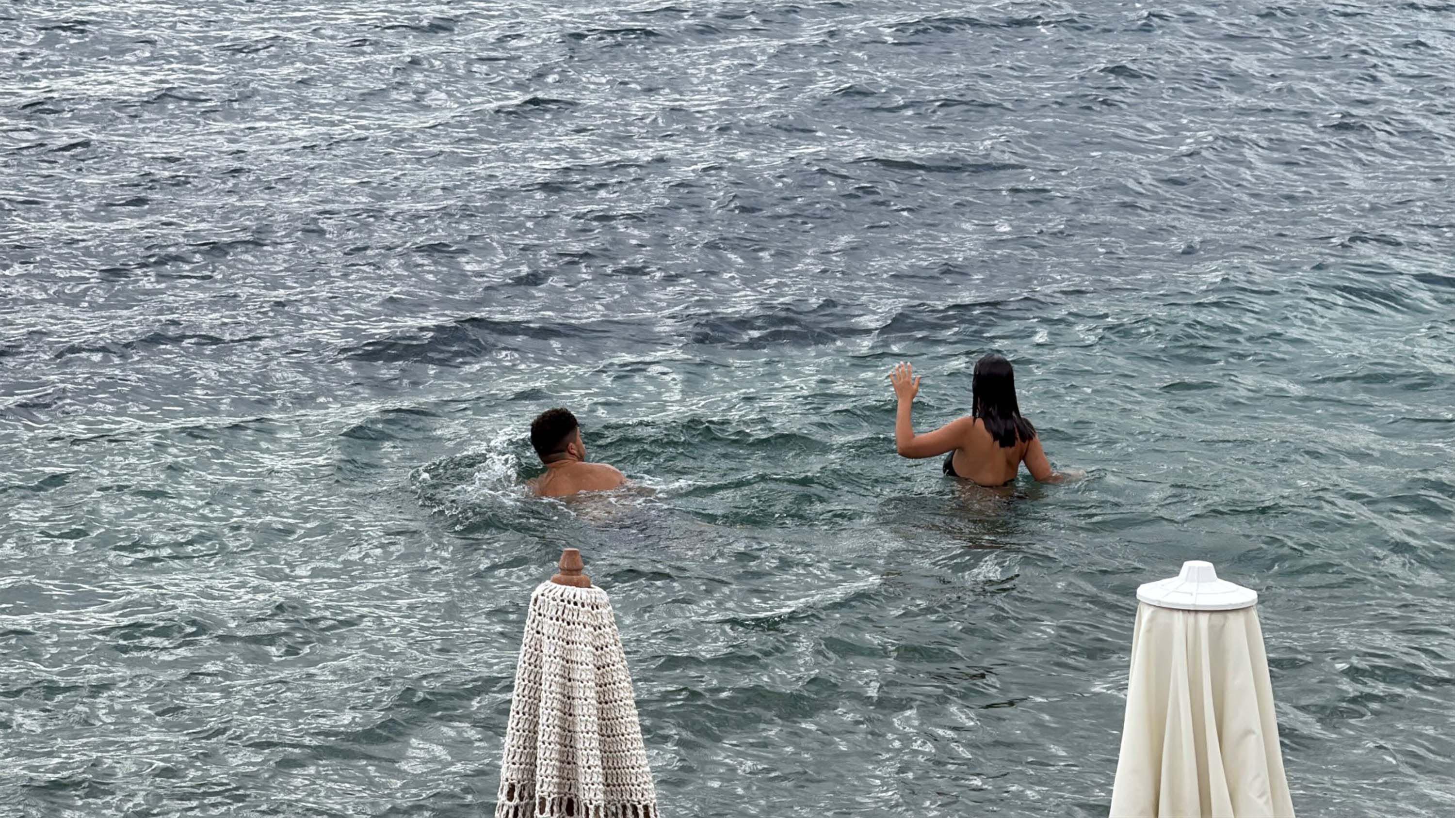 Öte yandan, yağmurun durduğu anlarda, Kumbahçe sahilinde yabancı turistler denize girdi. Bazı turistler ise plajda vakit geçirdi.