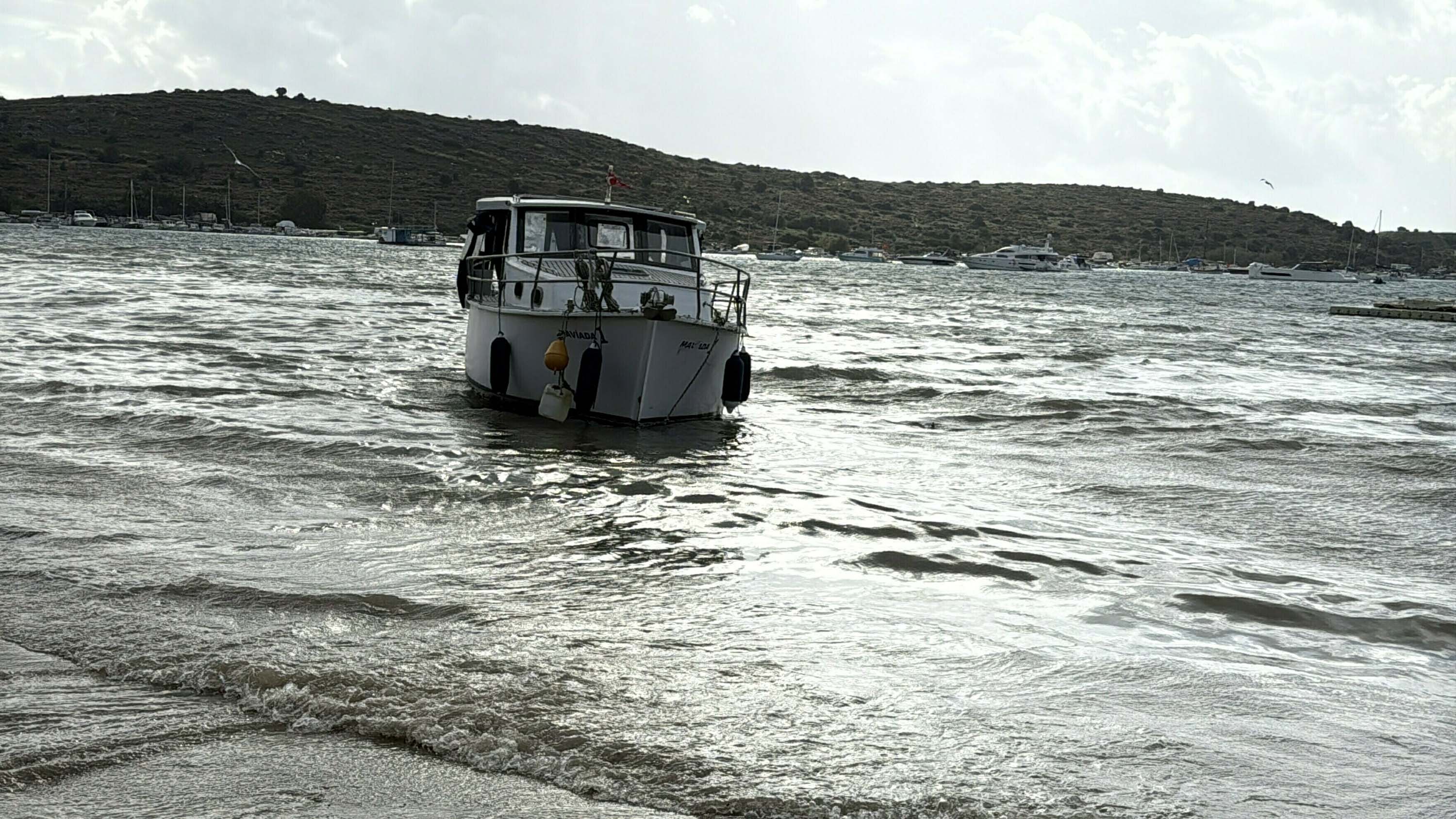 Saatteki hızı 80 kilometreyi aşan fırtına nedeniyle Gümbet sahilinde 2’si tekne ve 1 bot karaya oturdu, 11 noktada su baskınları yaşandı.