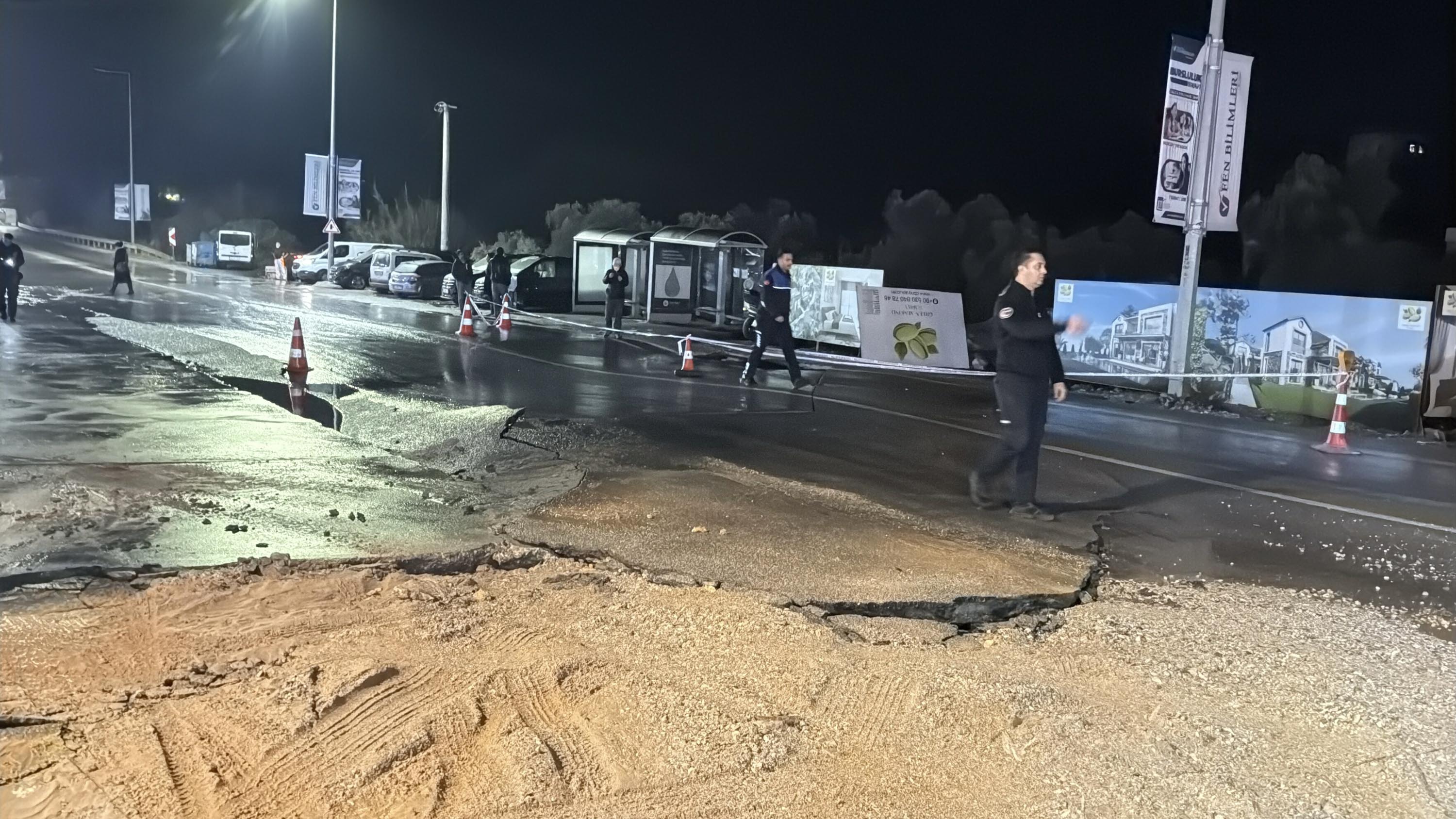 Ekiplerce yolun bir şeridi trafiğe kapatılırken, trafik kontrollü olarak sağlandı. Bölgede onarım çalışması başlatıldı. (DHA)