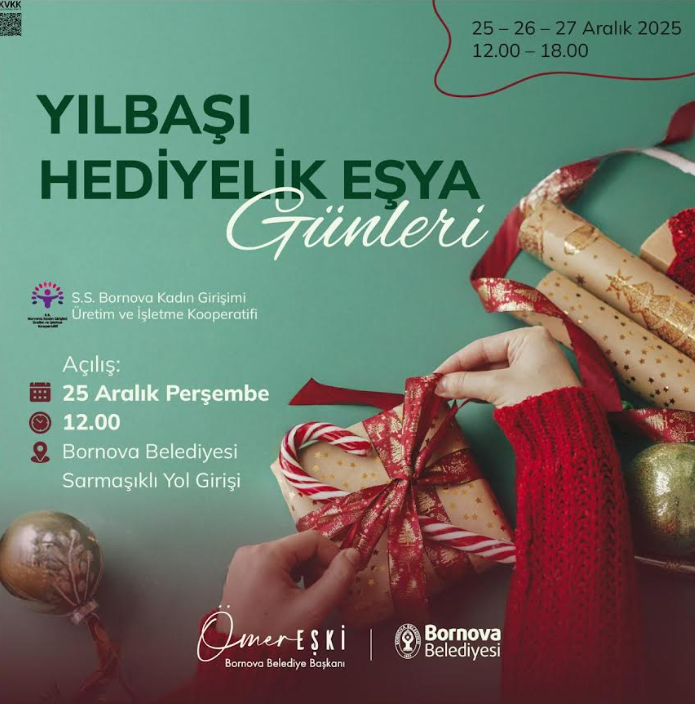 Yeni yıla sayılı günler kala Bornova Belediyesi’de Bornovalılar için düzenlediği özel etkinlikler devam ediyor. 25 Aralık saat 12:00’de başlayacak olan ve 3 gün sürecek ‘Yılbaşı Hediyelik Eşya Günleri’ nde kıyafetten oyuncağa, takıdan el yapımı ev yaşam ürünlerine yüzlerce seçenek Bornovalılar için sunulacak.