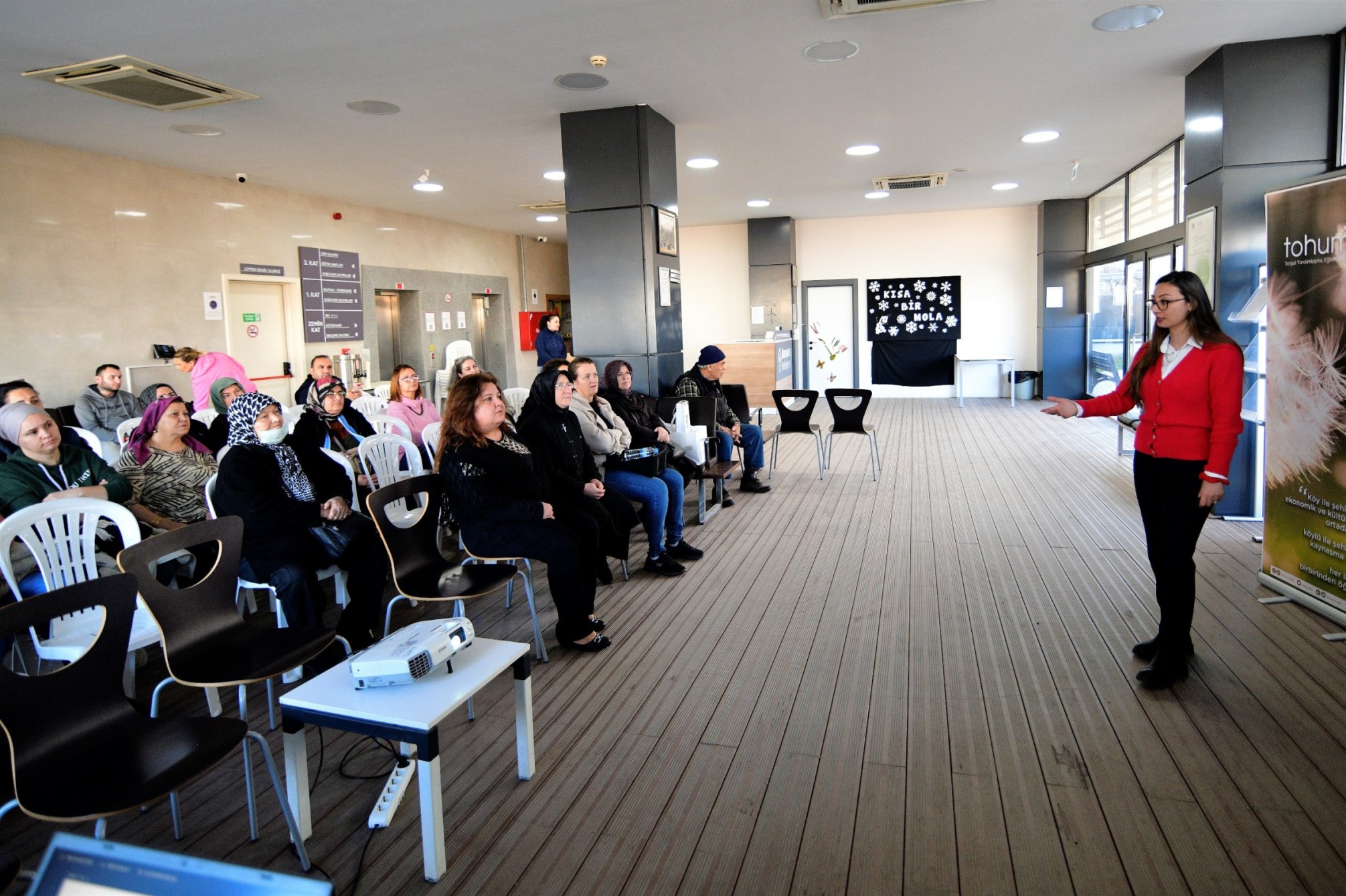 Eğitim programında kadınların hem üretim sürecinde hem de ev yaşamında uygulayabilecekleri sağlıklı beslenme alışkanlıkları ile ürünlerin doğru koşullarda muhafaza edilmesine yönelik pratik öneriler paylaşıldı.