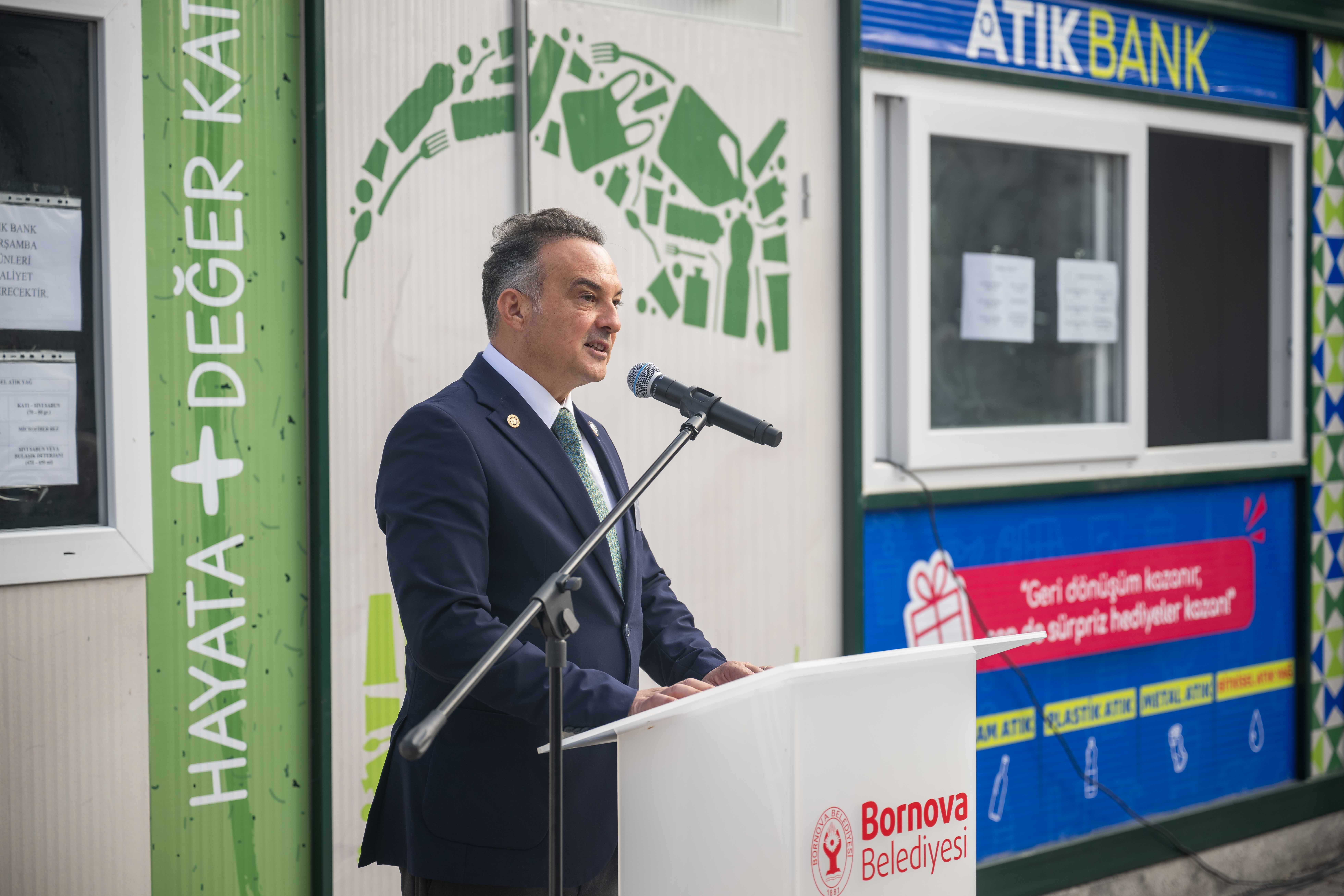 Bornova Belediyesi, Avrupa Atık Azaltım Haftası kapsamında İzmir’de belediyeler arasında bir ilk olan Atık Bank Projesi’ni hayata geçirdi. Çamdibi Kapalı Pazaryeri önünde yapılan açılışta atıklarını getiren vatandaşlara sabun, temizlik ürünleri ve belediye tesislerinde üretilen organik gübre hediye edildi. İlk hediyeleri Bornova Belediye Başkanı Ömer Eşki verdi.