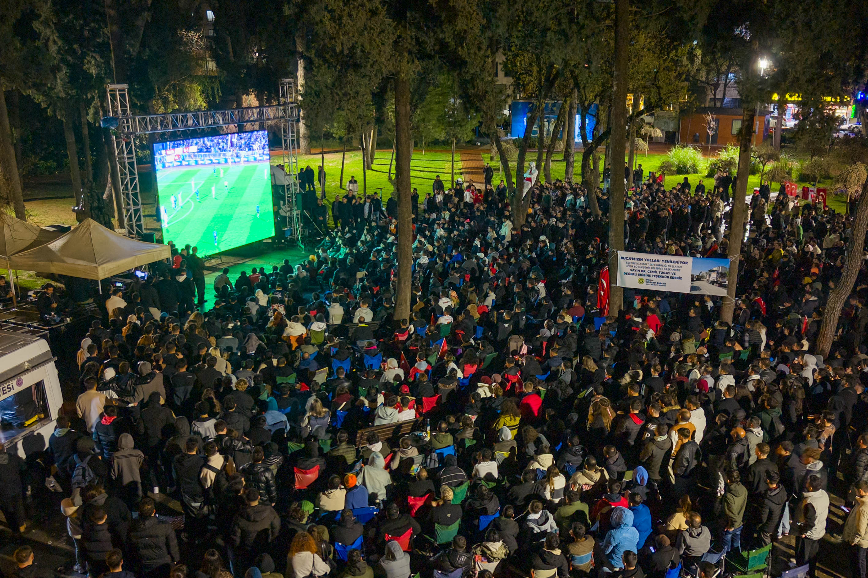 Tek yürek olan binlerce İzmirliyle birlikte maçın heyecanını yaşayan Buca Belediye Başkanı Görkem Duman, her pozisyonda hemşehrilerinin coşkusuna ortak oldu. Vatandaşların Türk bayraklarıyla doldurduğu alanda heyecan doruğa çıkarken geceye Başkan Görkem Duman’ın nokta atışı skor tahmini damga vurdu.
