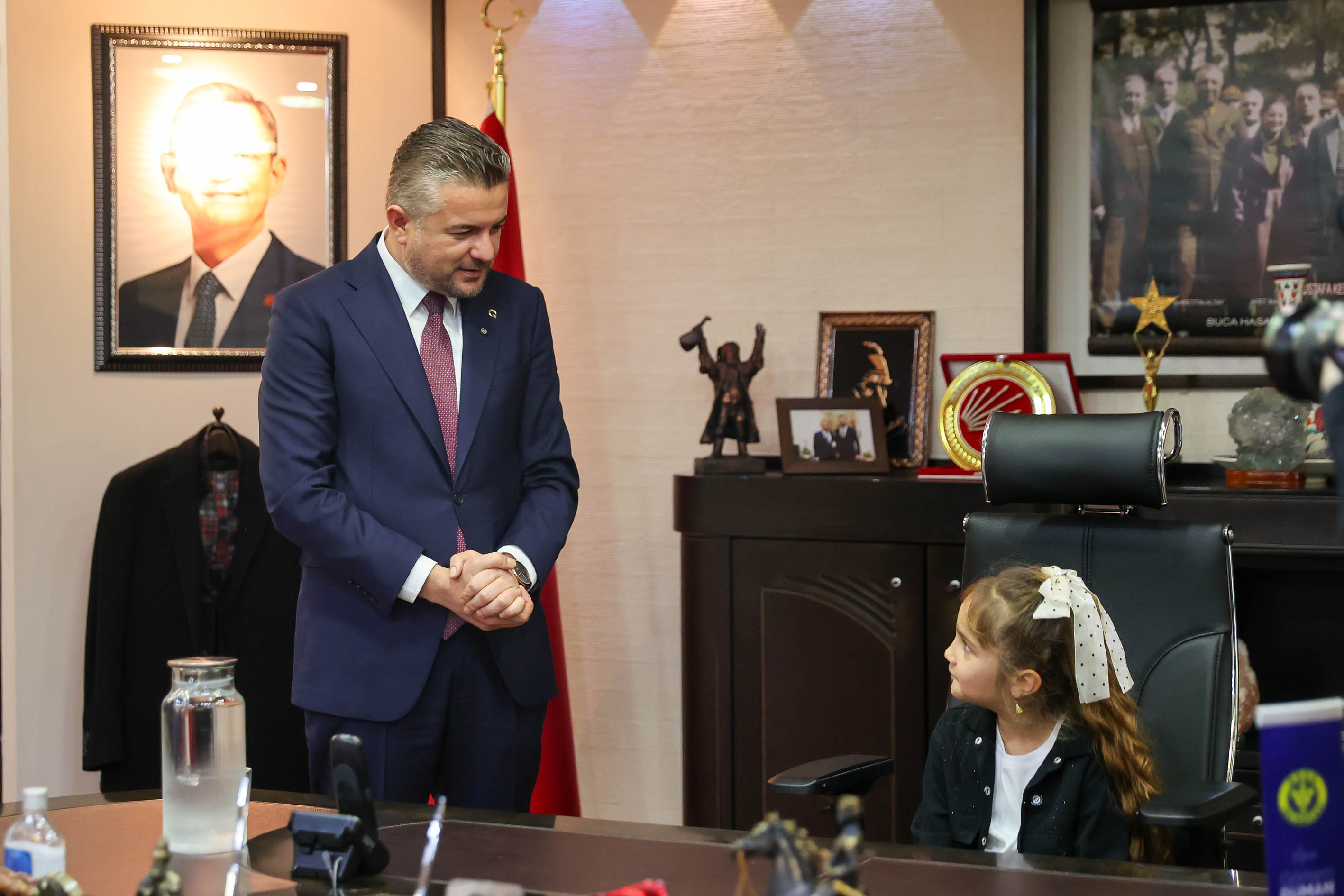 Vali Rahmi Bey İlkokulu öğrencisi Adasu Yaşasın, 23 Nisan Ulusal Egemenlik ve Çocuk Bayramı kutlamaları kapsamında Buca Belediye Başkanlığı koltuğuna oturdu.