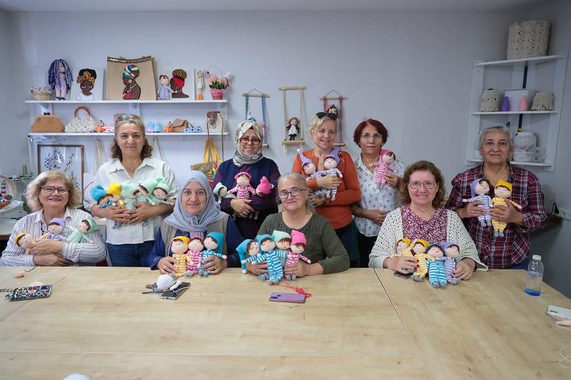 Buca Belediyesi Türkan Saylan Çağdaş Yaşam Merkezi El Sanatları Kursu’nda eğitim alan kadınlar, Behçet Uz Çocuk Hastalıkları Eğitim ve Araştırma Hastanesi’nde tedavi gören lösemili çocuklar için haftalarca emek vererek rengârenk bebekler hazırladı.
