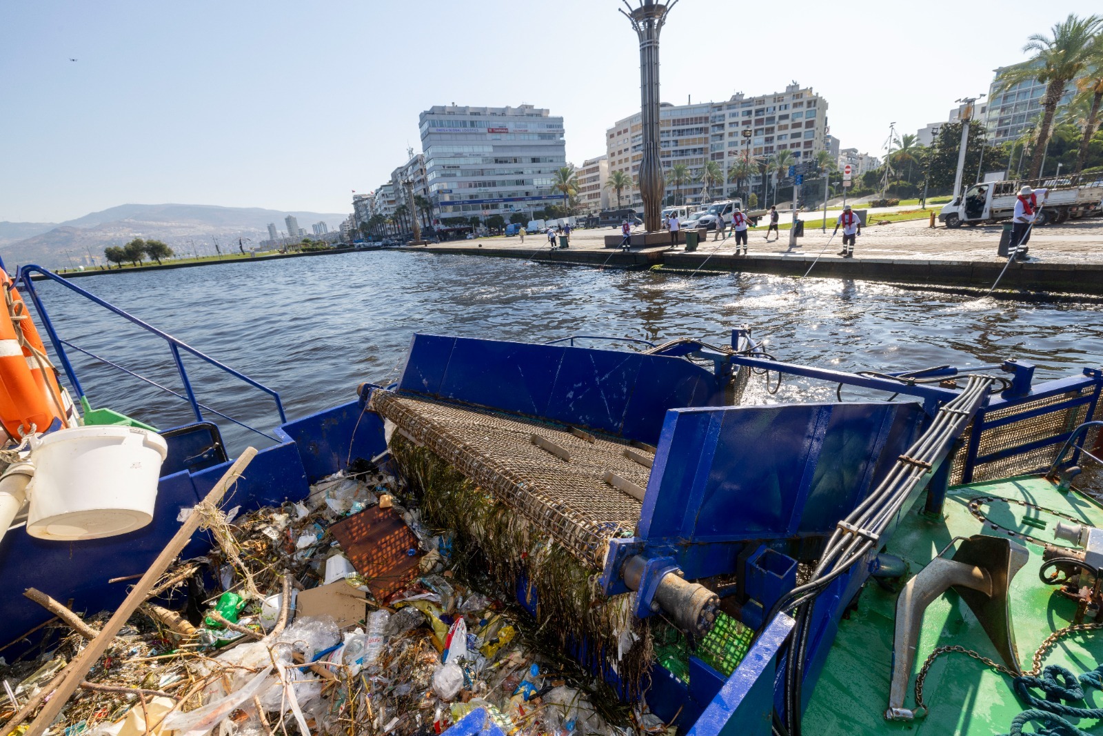 İzmir Büyükşehir Belediyesi ekipleri, sadece şehrin sokaklarını değil, deniz yüzeyini de süpürüyor. Özel donanımlı iki deniz süpürge gemisi, iki paletli amfibik (yüzergezer) araç, iki sıkıştırmalı çöp kamyonu ve Çevre-1 kontrol teknesi ile hem karadan hem de denizden atık toplama çalışmaları yürütülüyor. 2025 yılı içinde toplam 632 ton çöp toplandı.