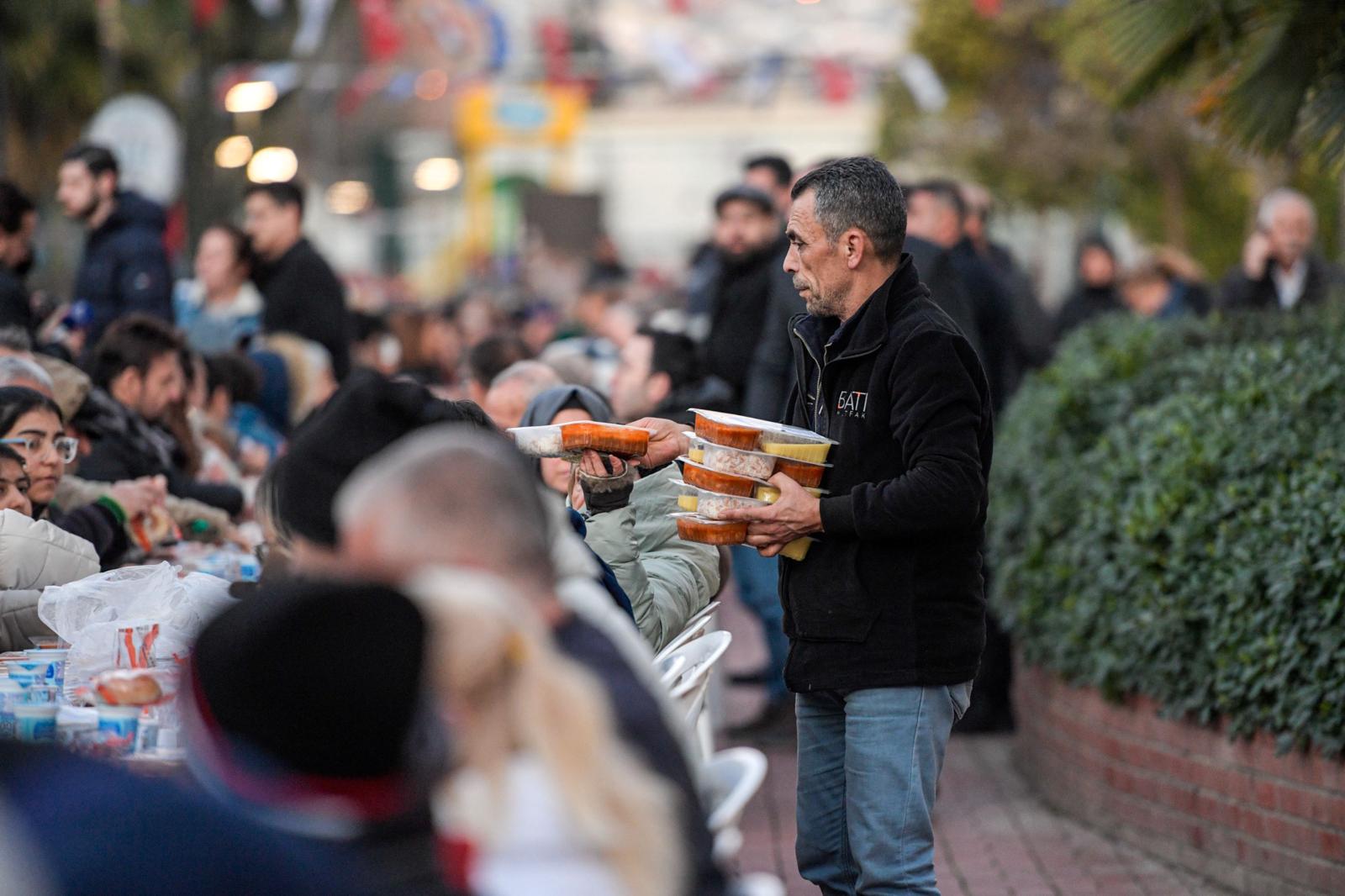 İzmir Büyükşehir Belediyesi, ramazanda kentin dört bir yanında iftar sofraları kurmaya devam ediyor. İzmir Büyükşehir Belediyesi tarafından iftar sofrası bu kez Karşıyaka’da kuruldu.
